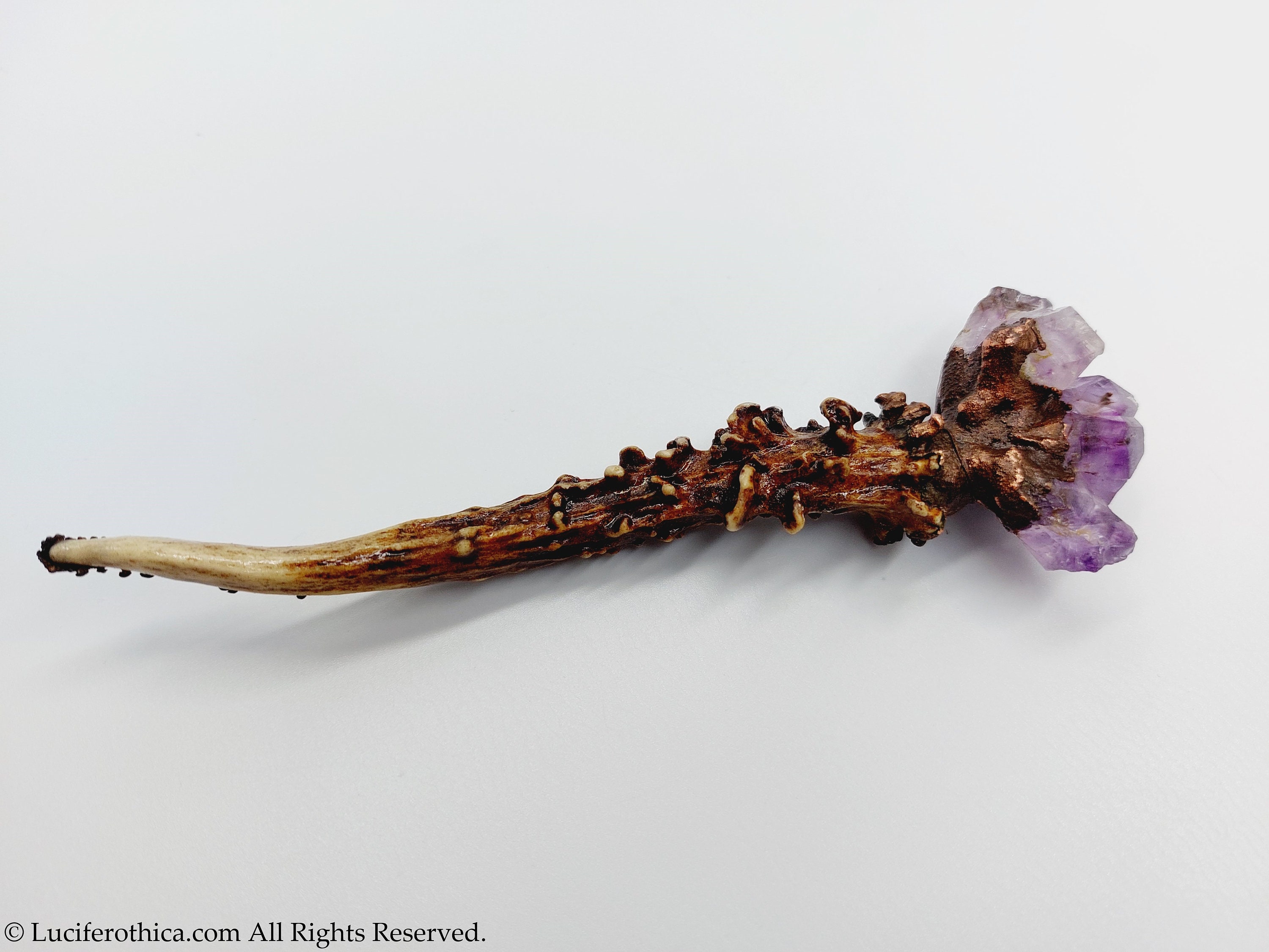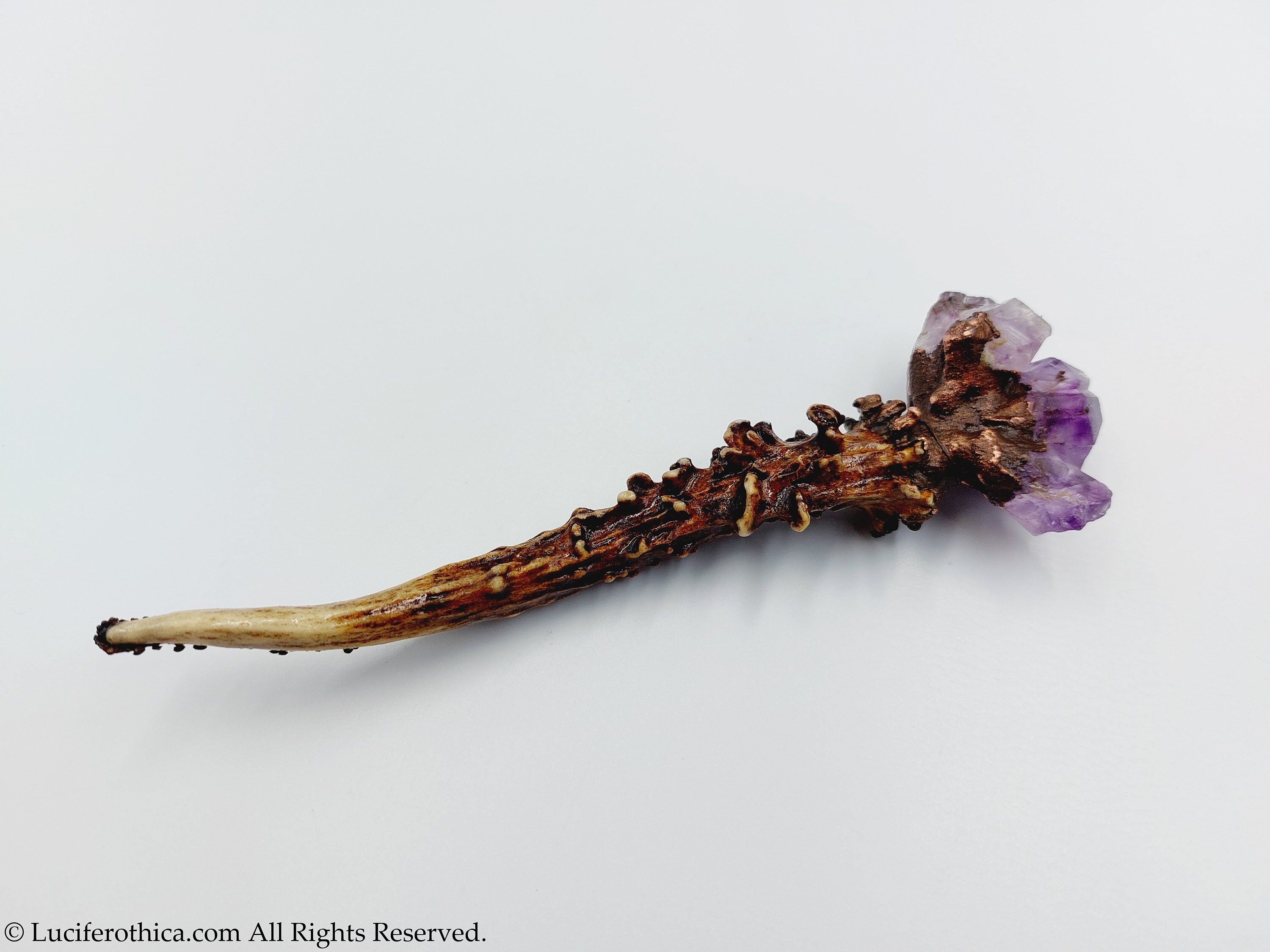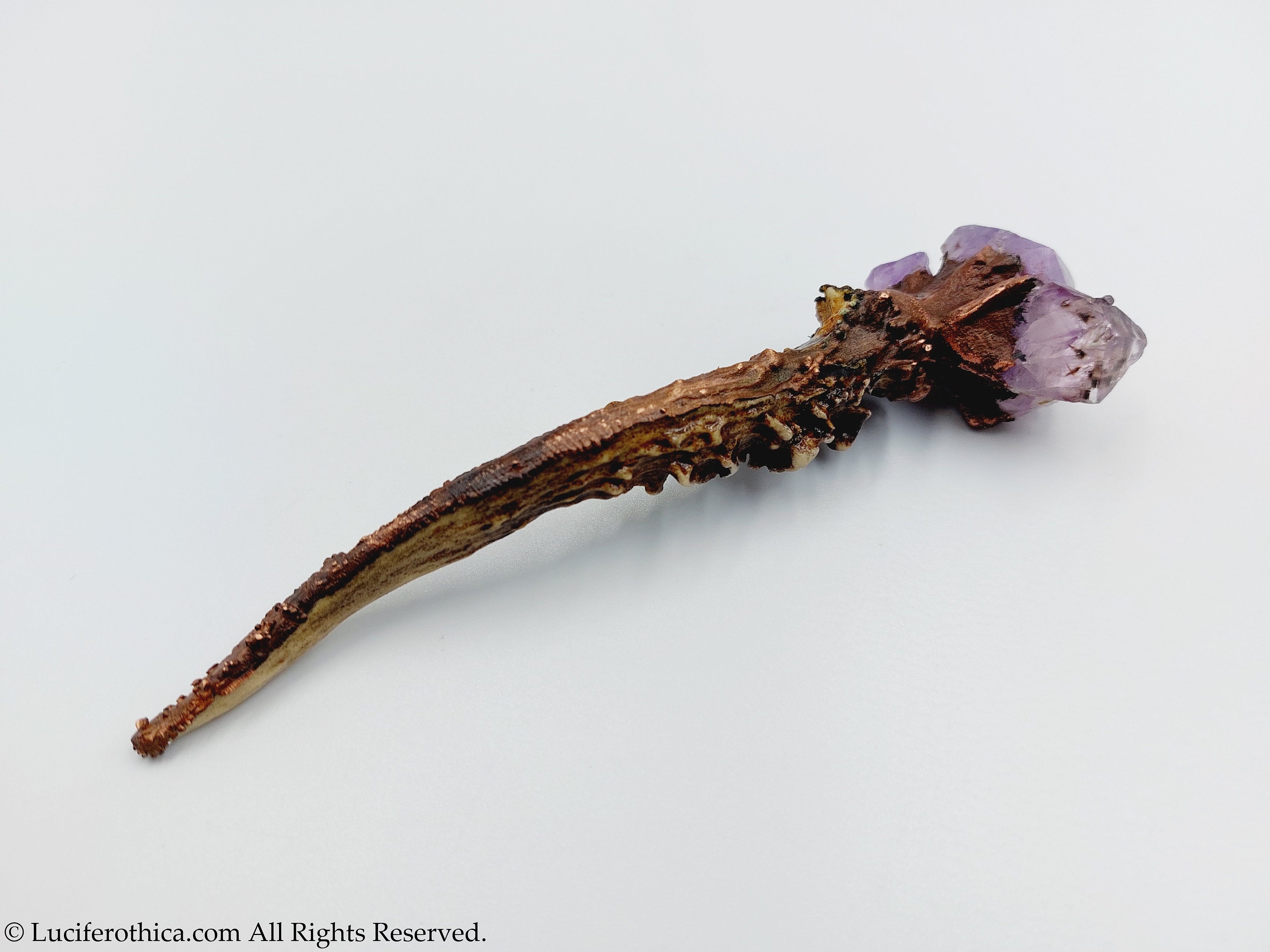 Amethyst Crystal Antler Wand (Electroformed Copper)