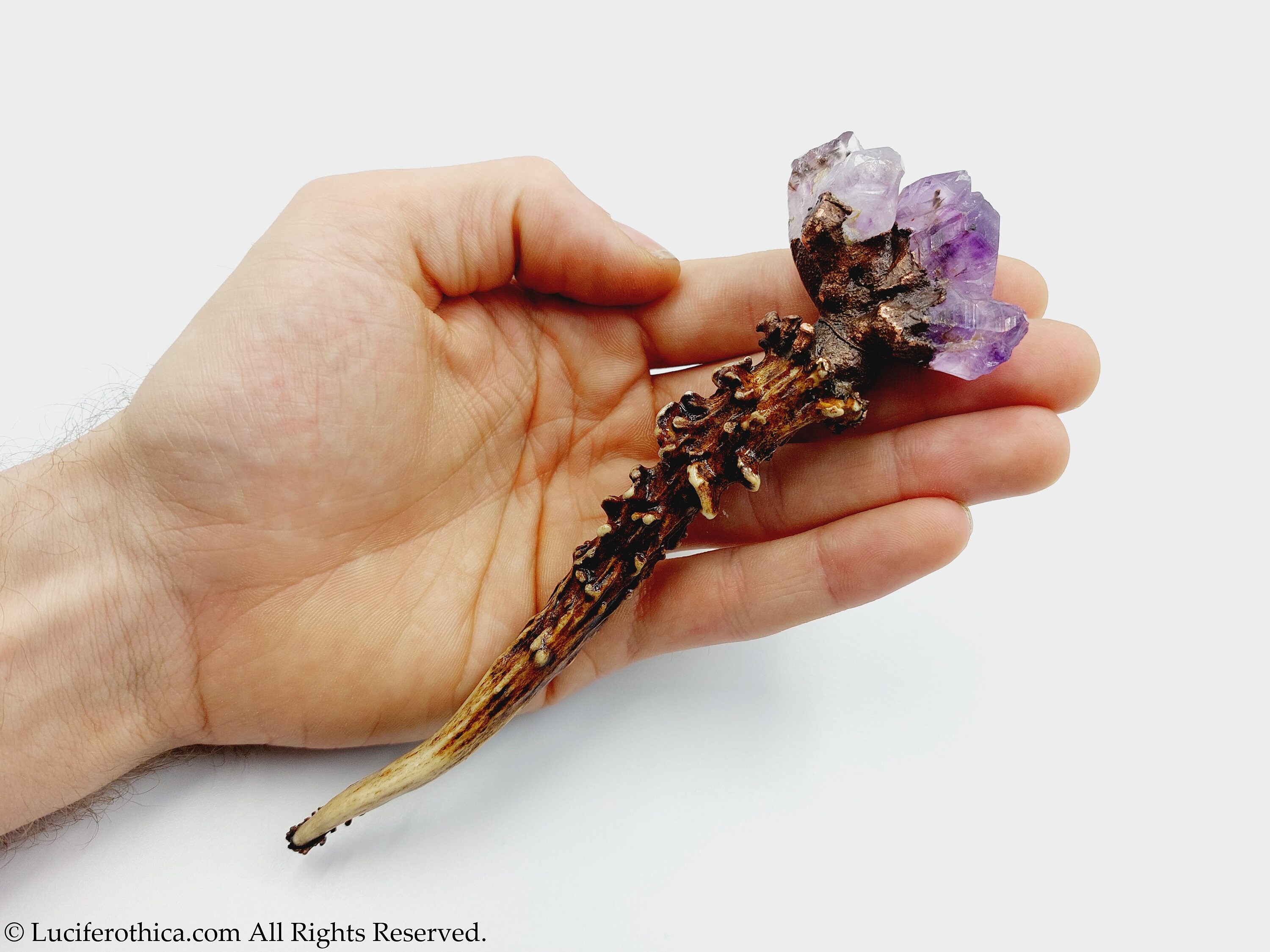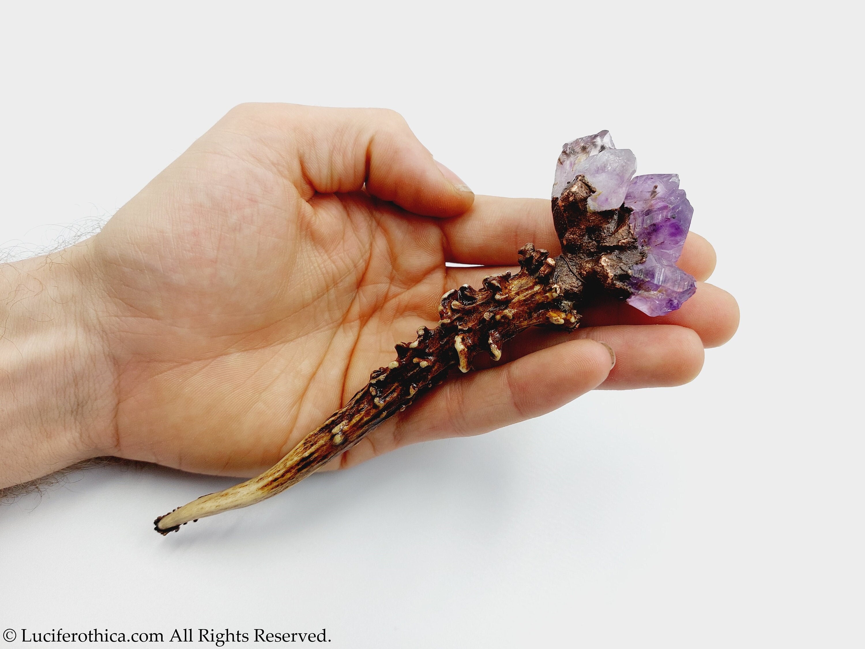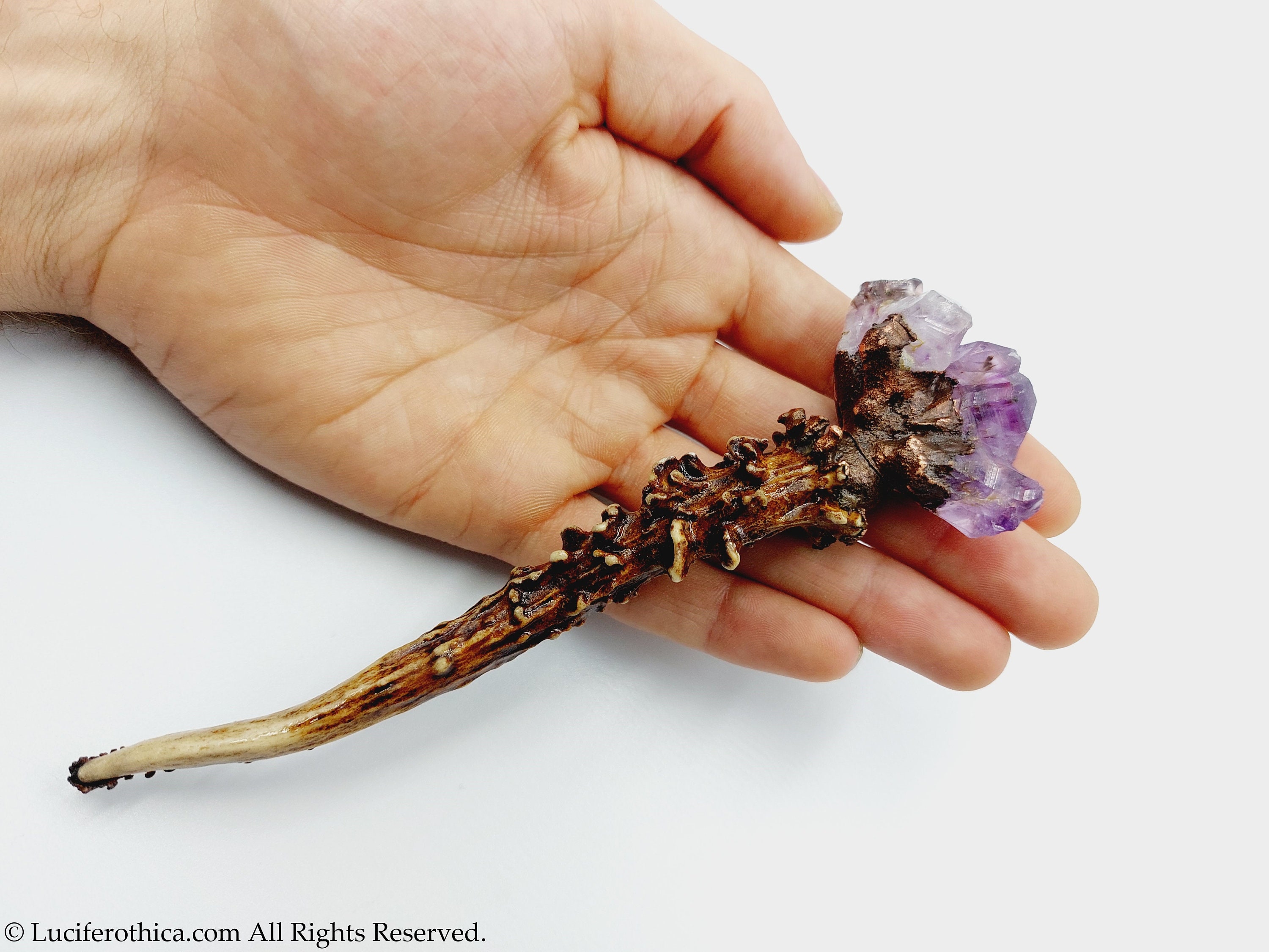 Amethyst Crystal Antler Wand (Electroformed Copper)