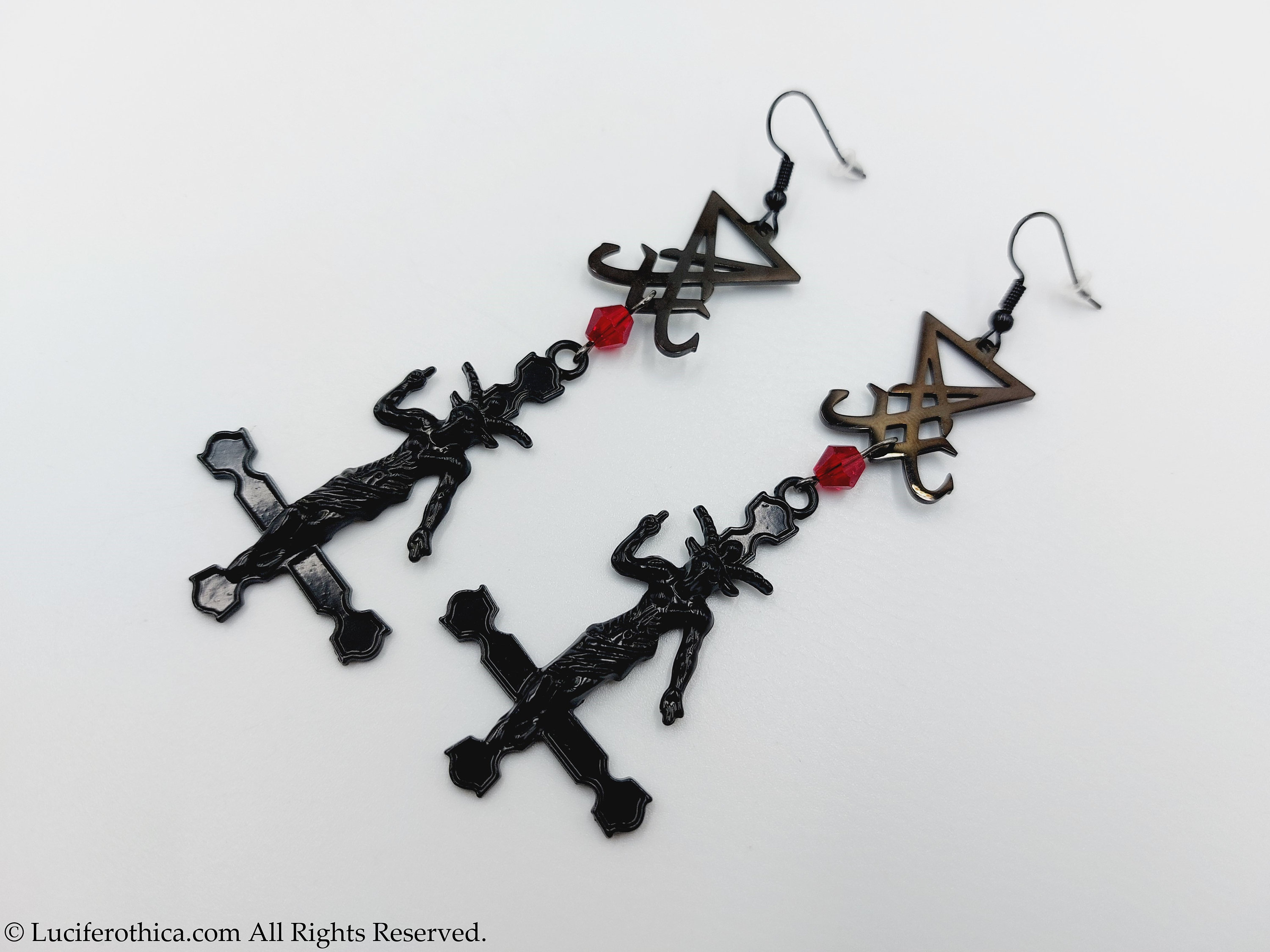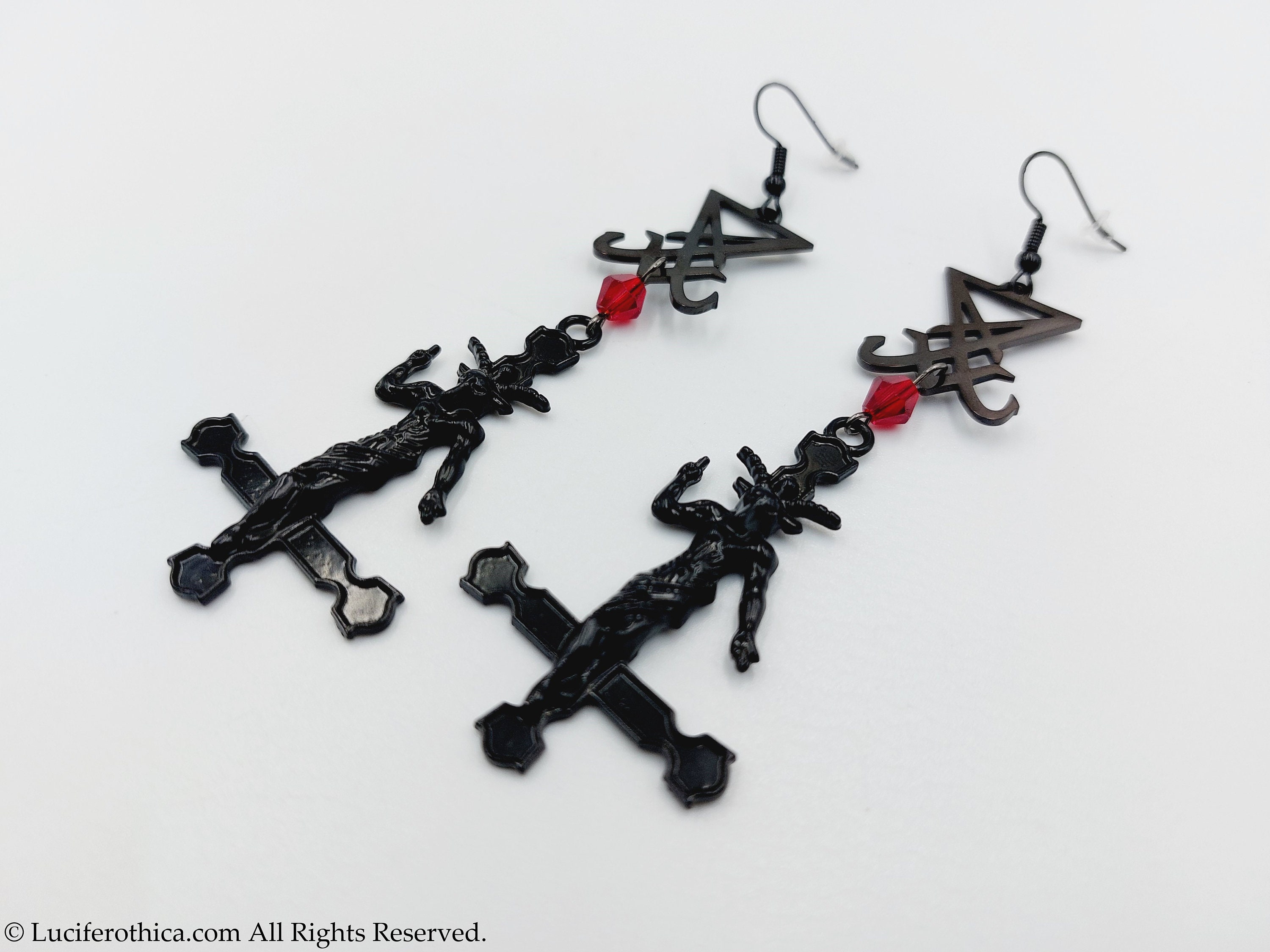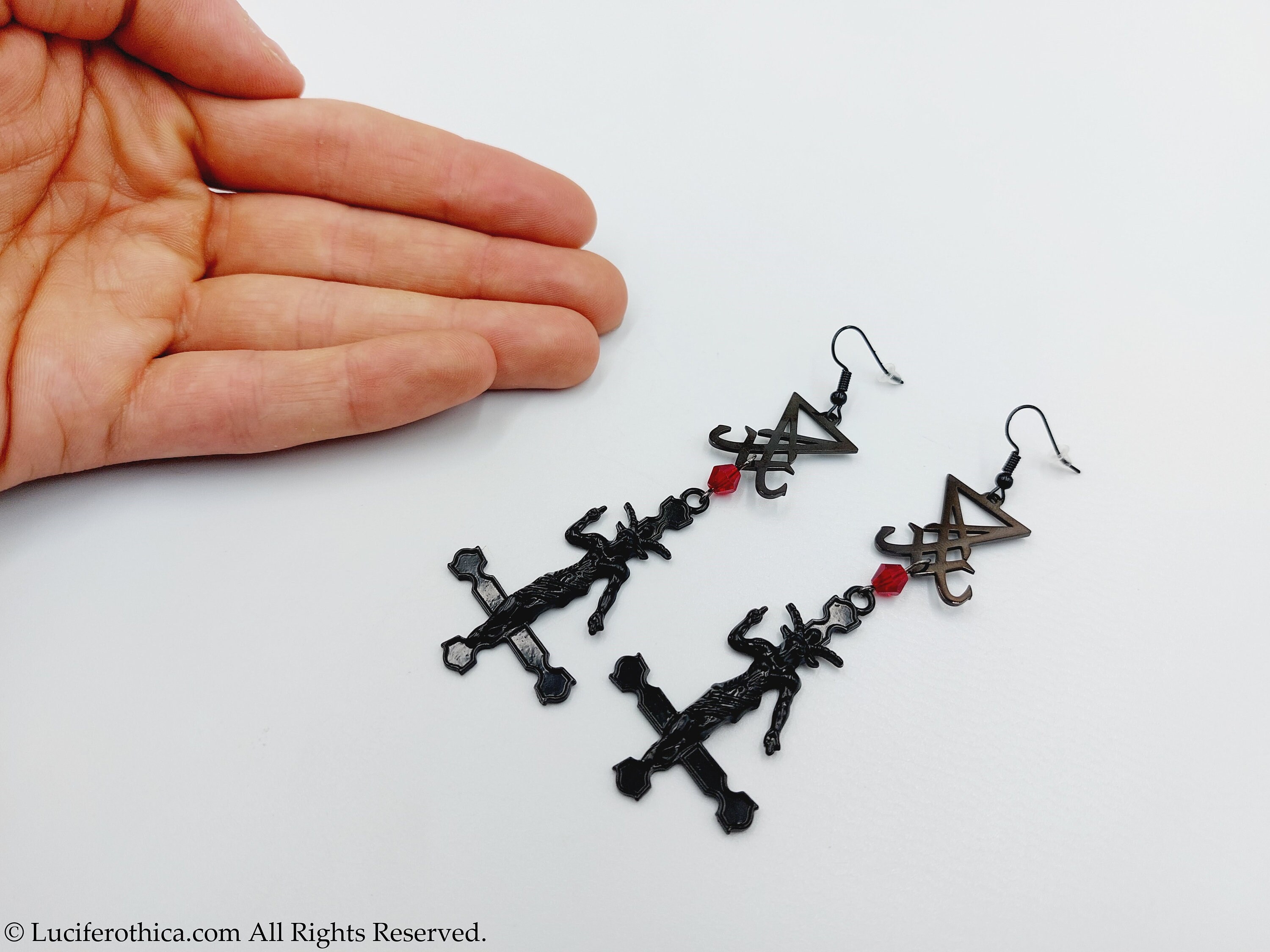 - Black Stainless Steel inverted crosses with Standing Baphomet charm upon the cross.