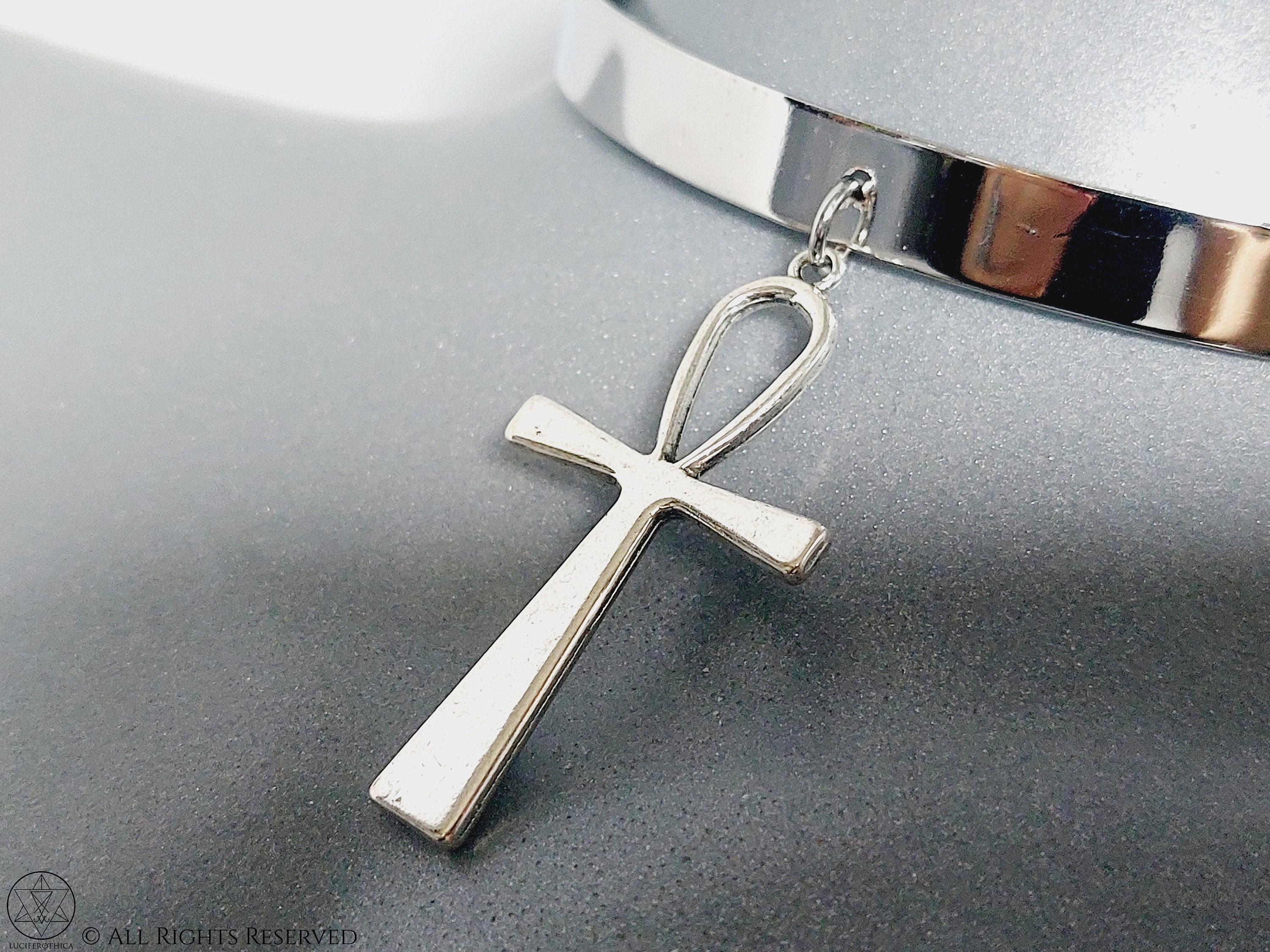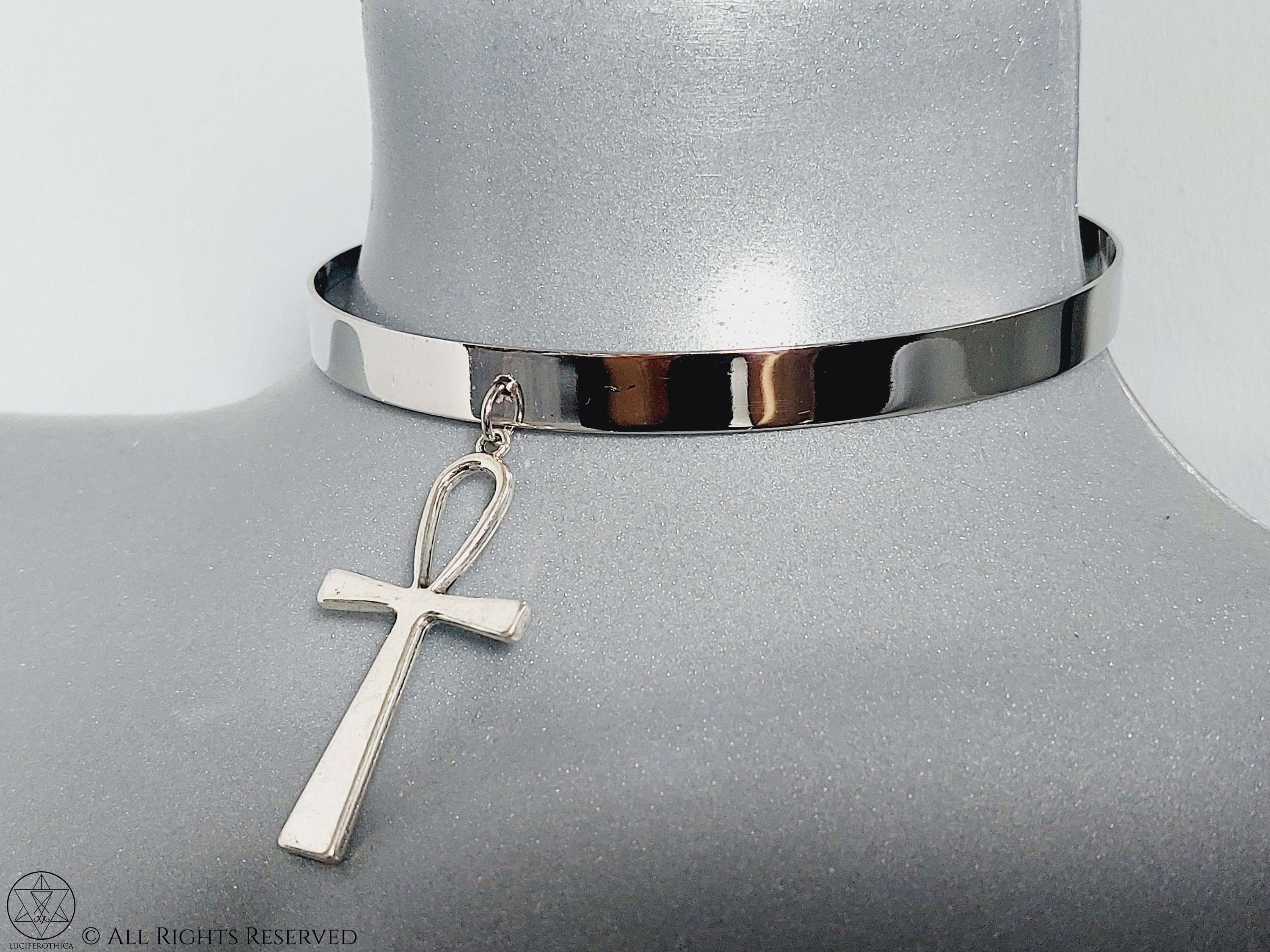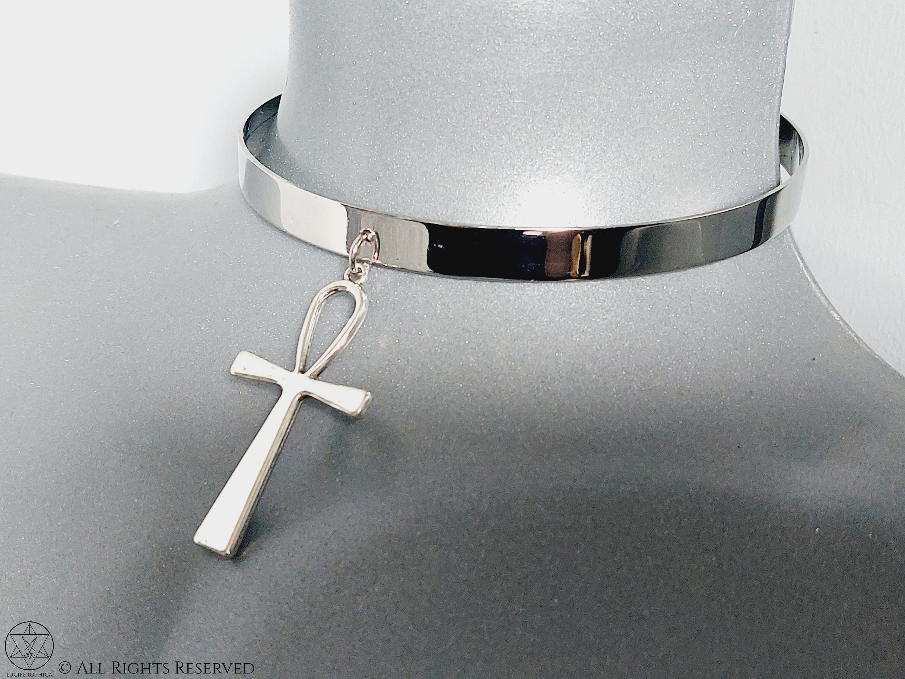 Unique handmade solid-metal ankh collar style choker.