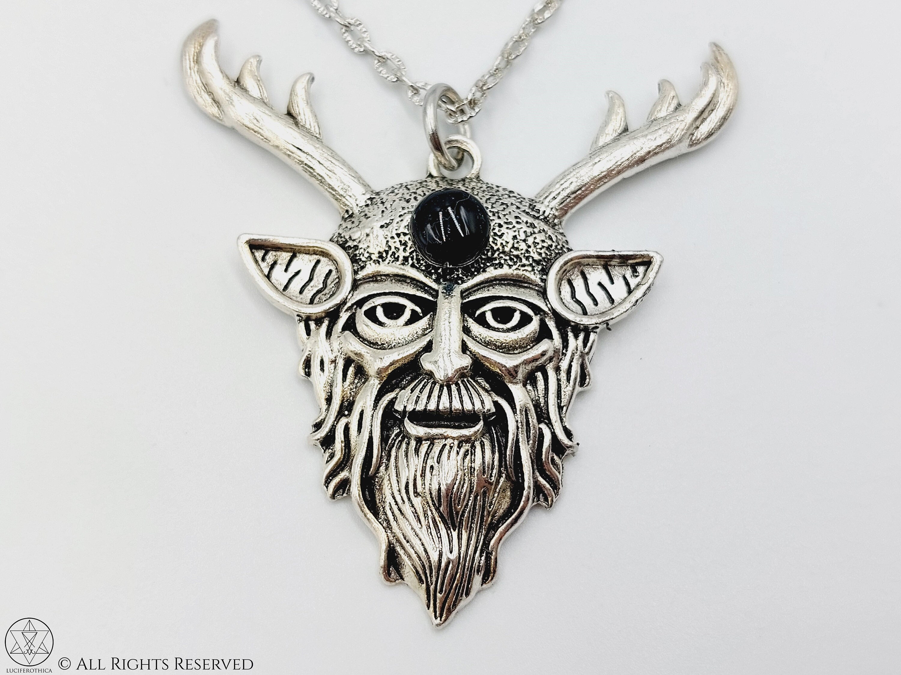 - Cernunnos charm has a Black Agate cabochon on his third eye.