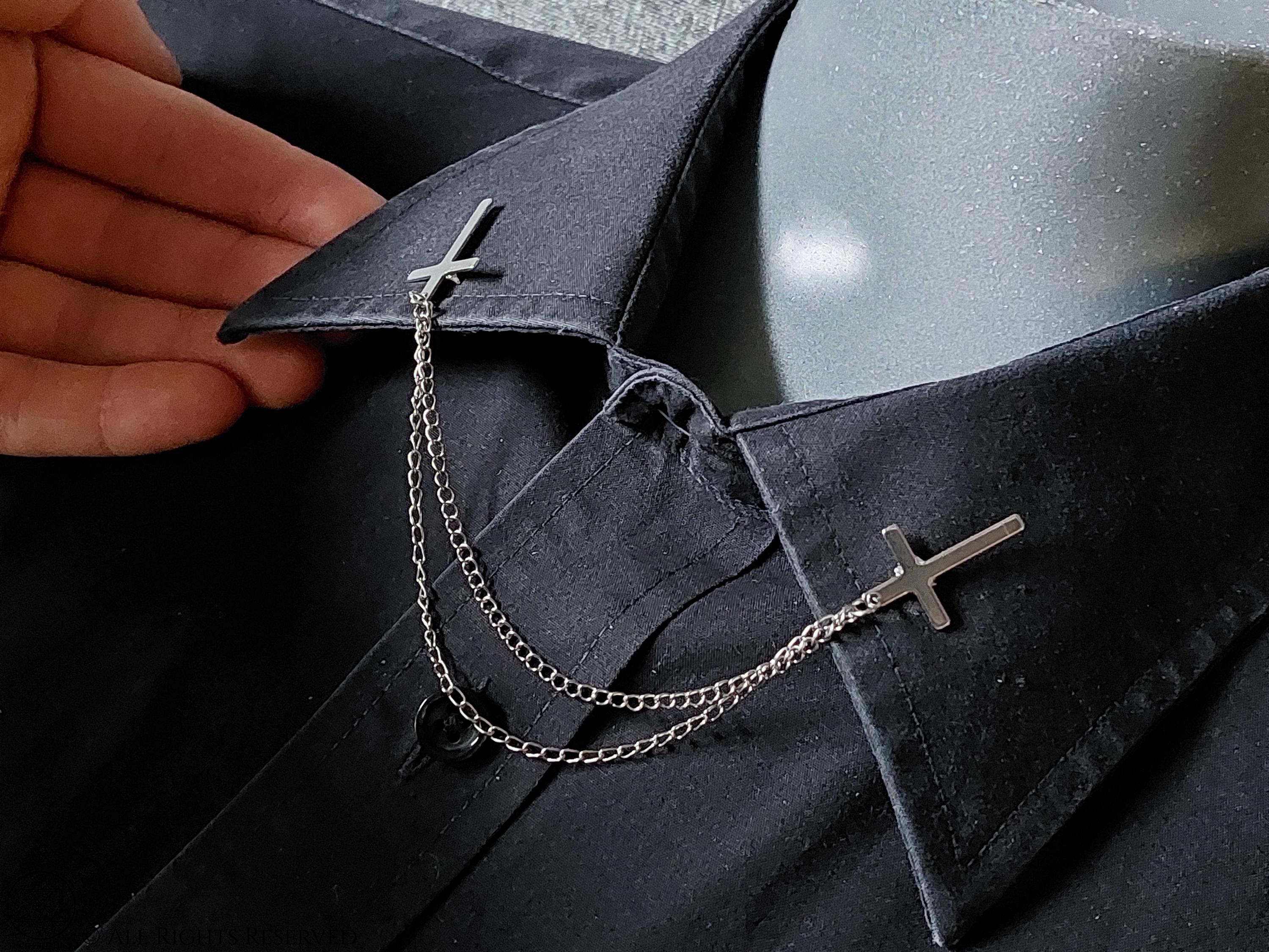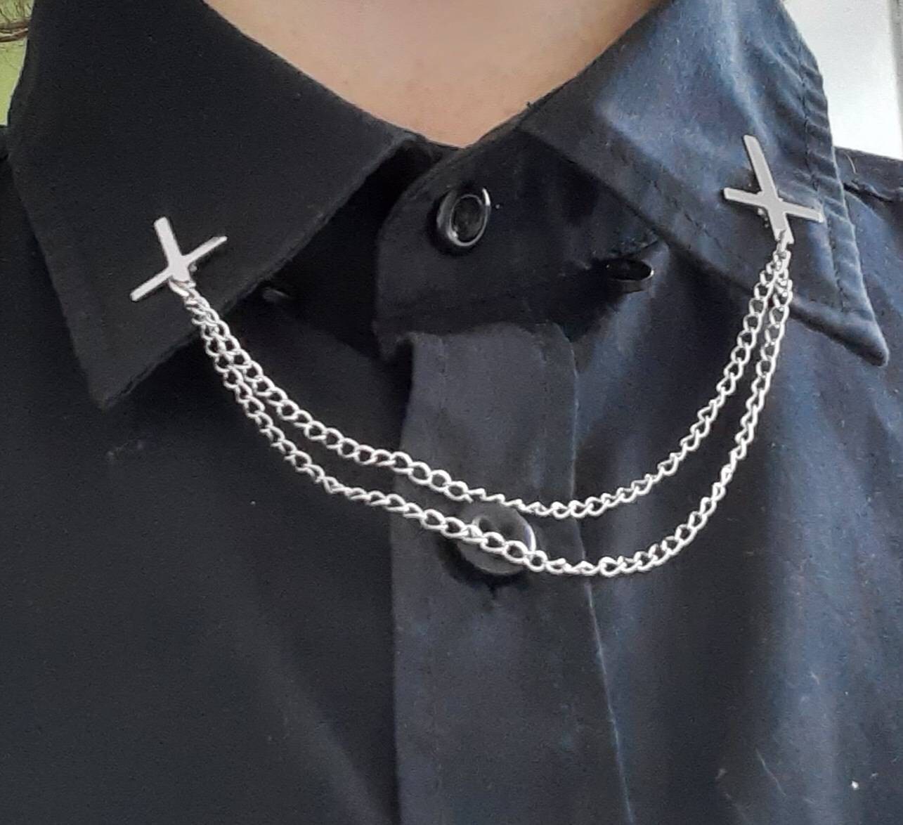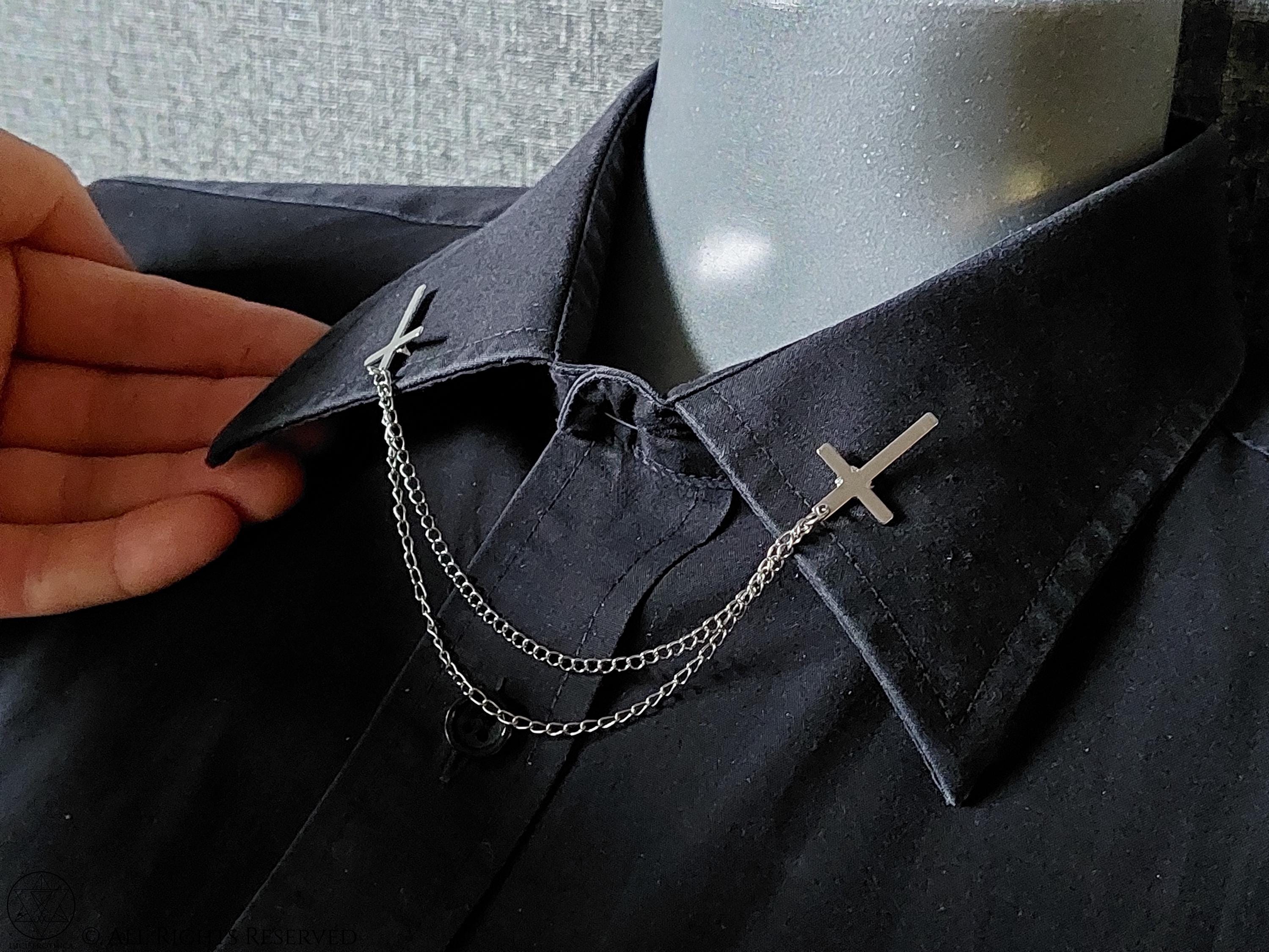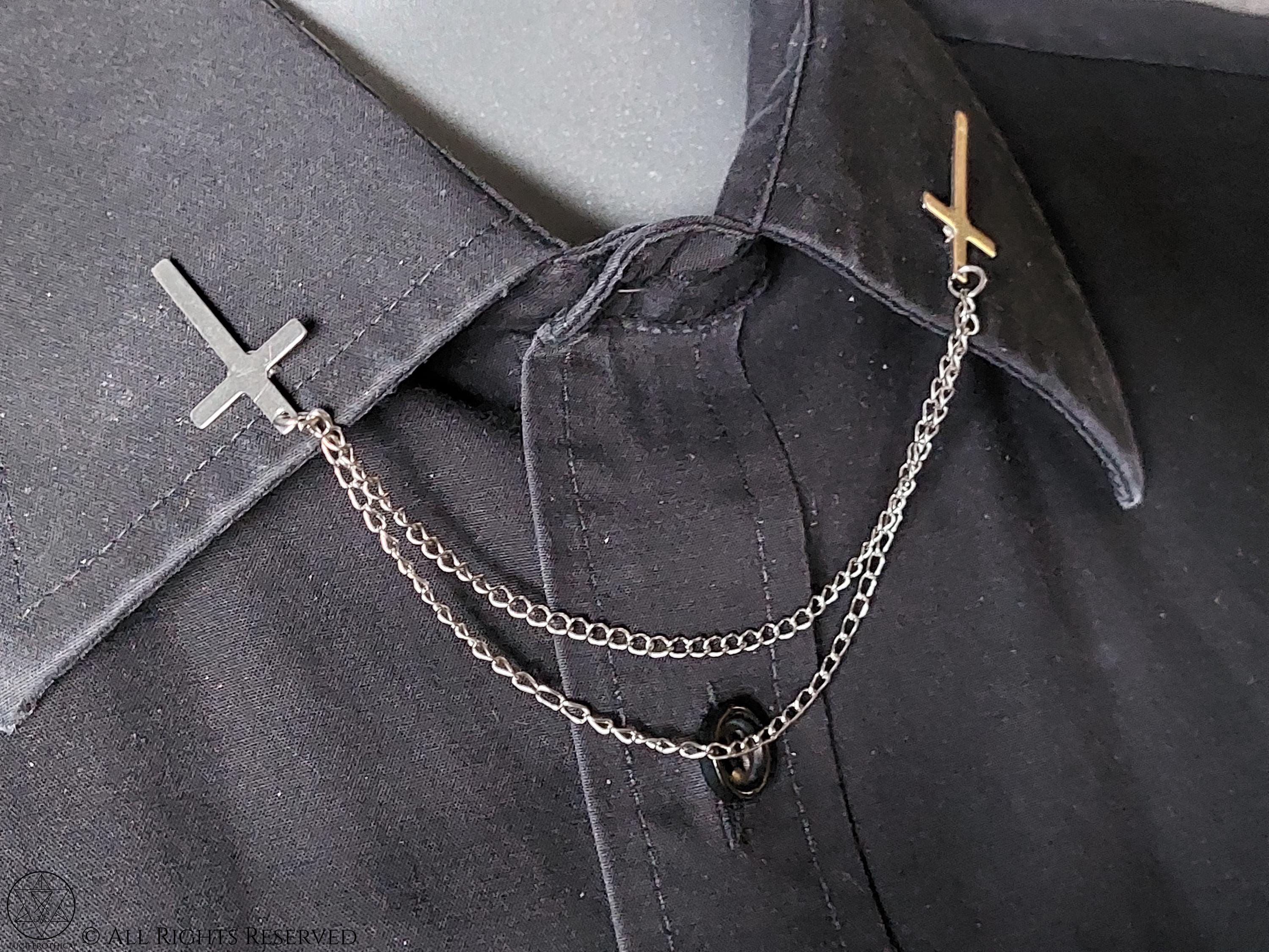 Our handmade collar chain pins are ideal as a finishing touch or as an eye catching detail for your first class shirt, an elegant outfit or ritual garments.