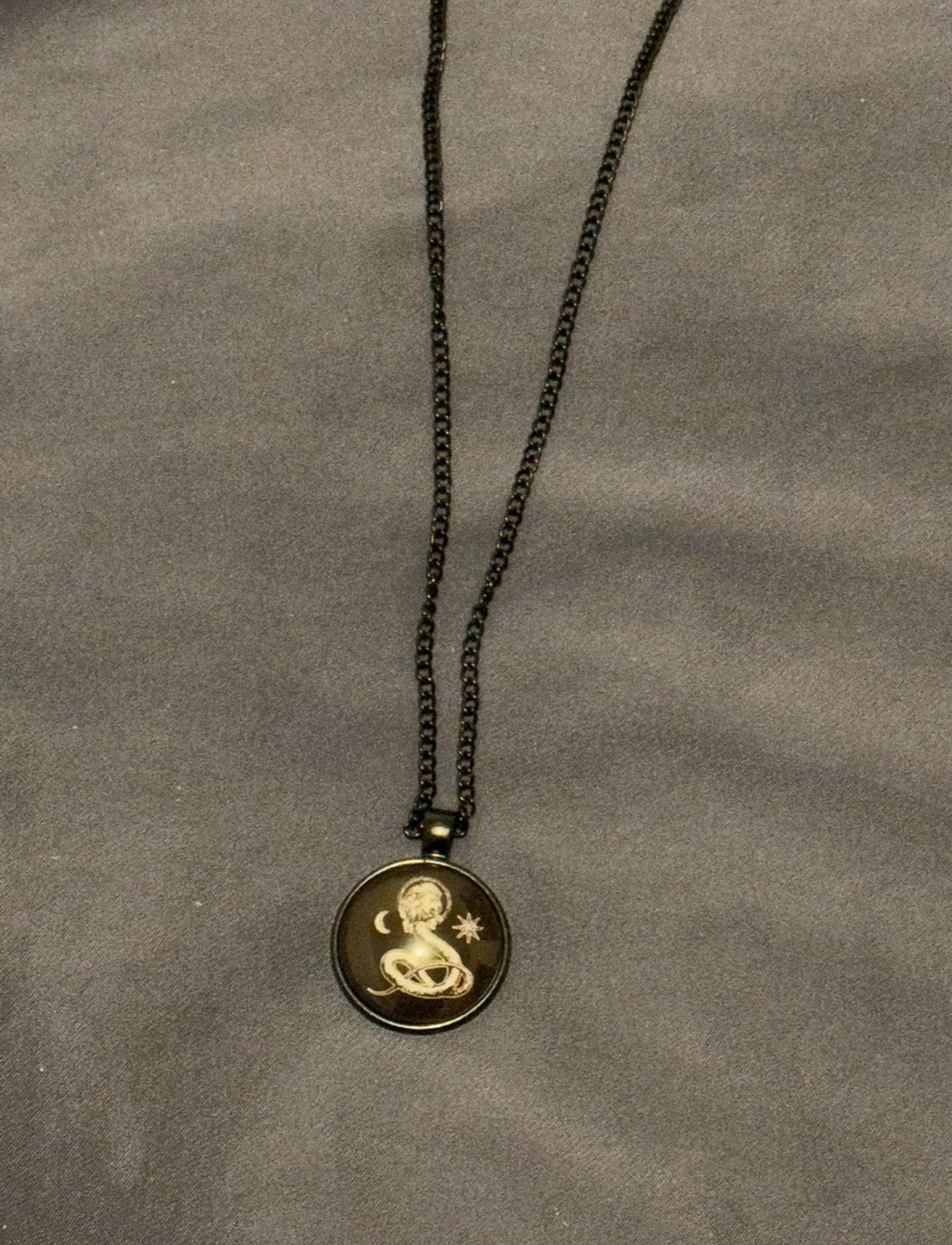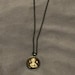 - Oval Glass Dome shaped pendant, White symbols and black background.