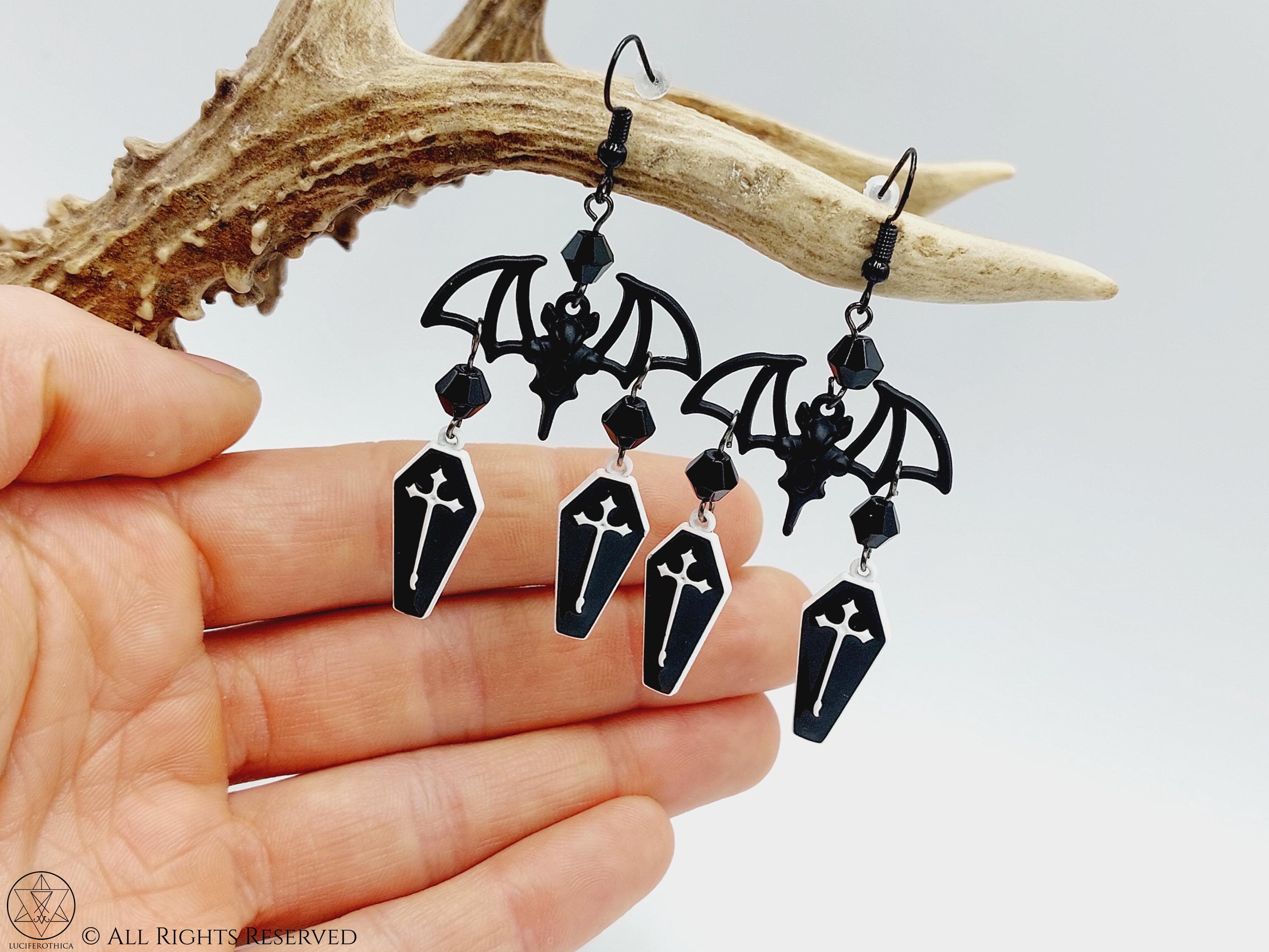 Black & White Coffin Bat Earrings