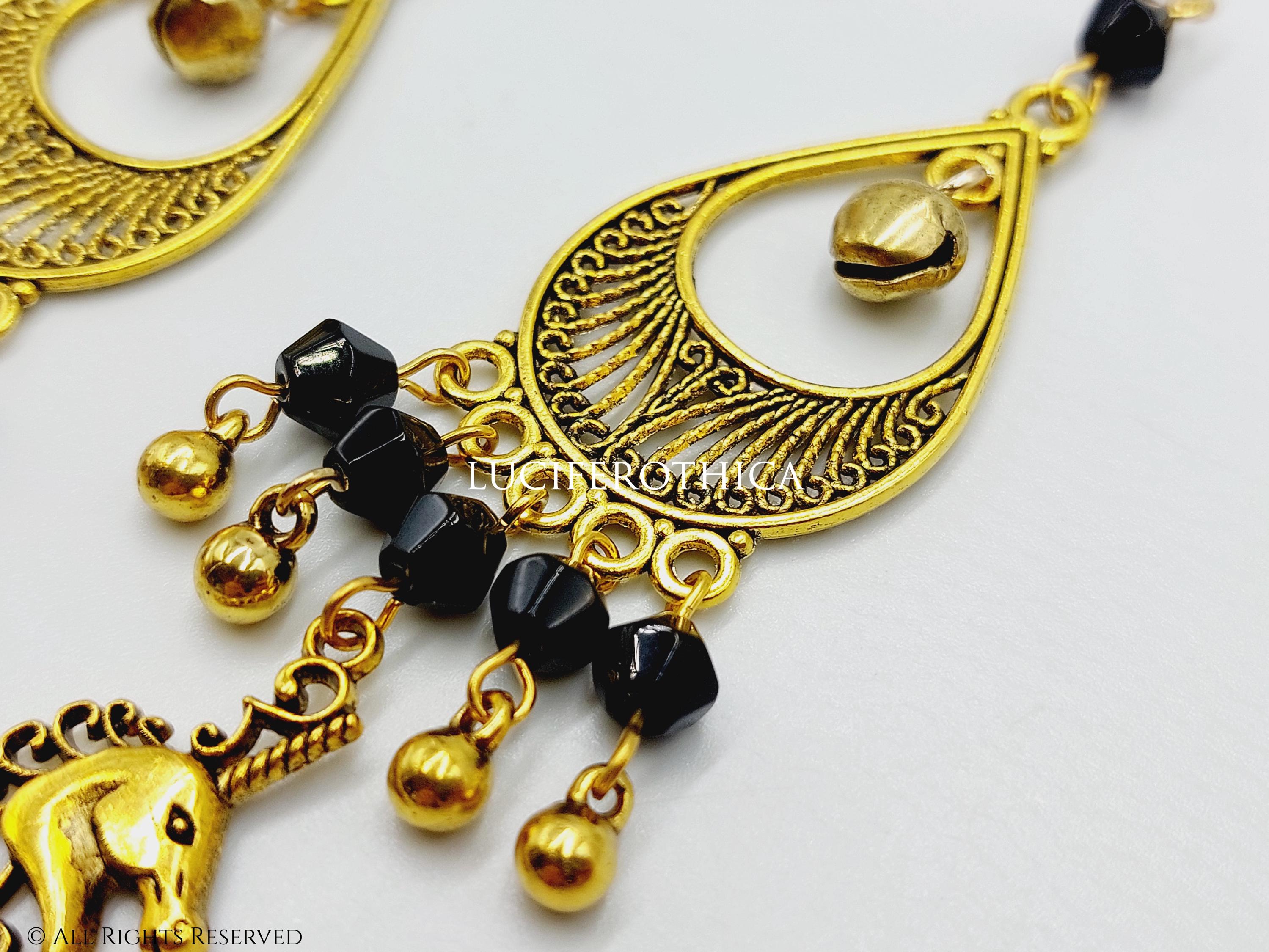 - Black faceted beads and gold tone balls.