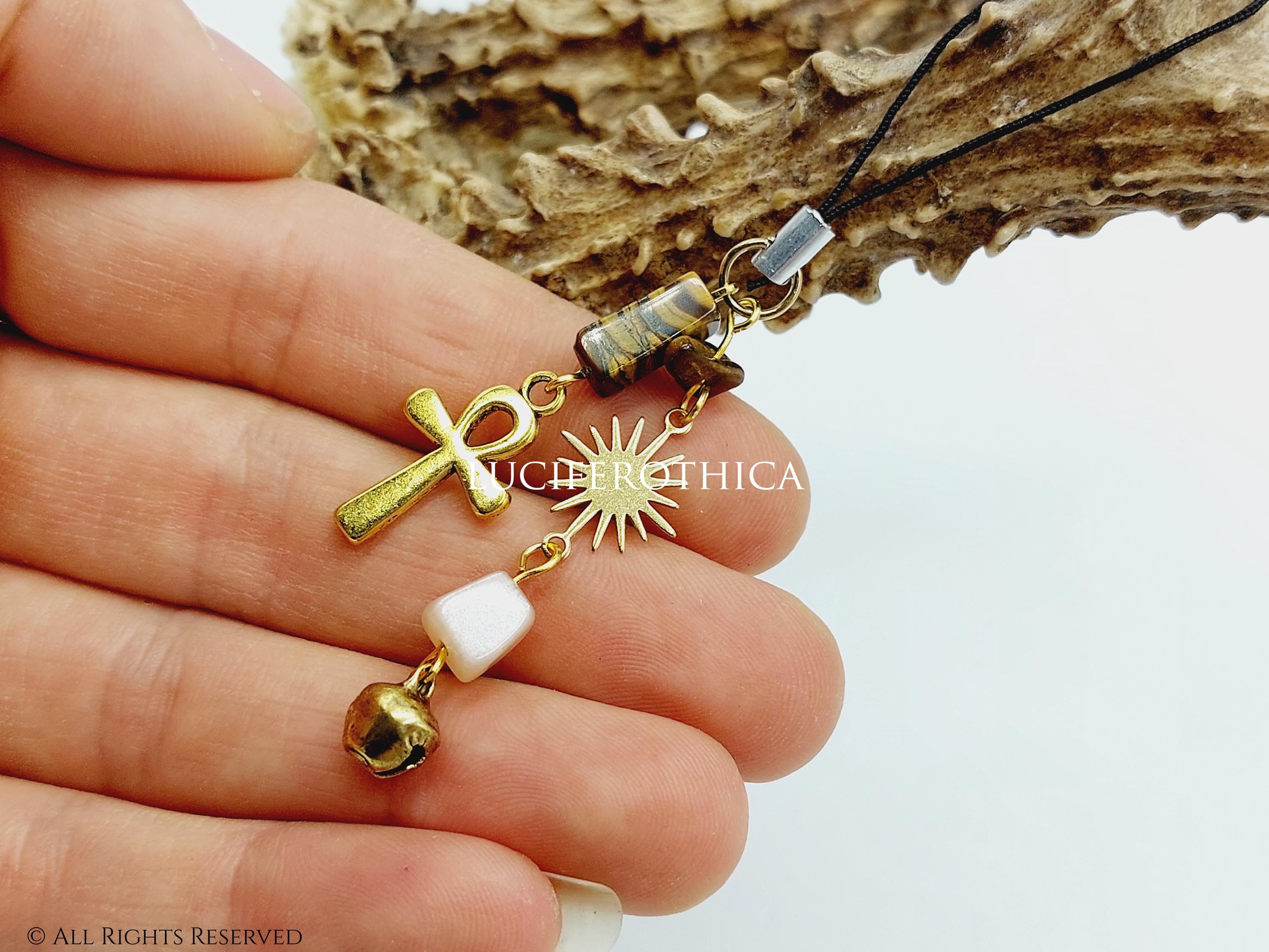 - Gold tone Ankh charm.