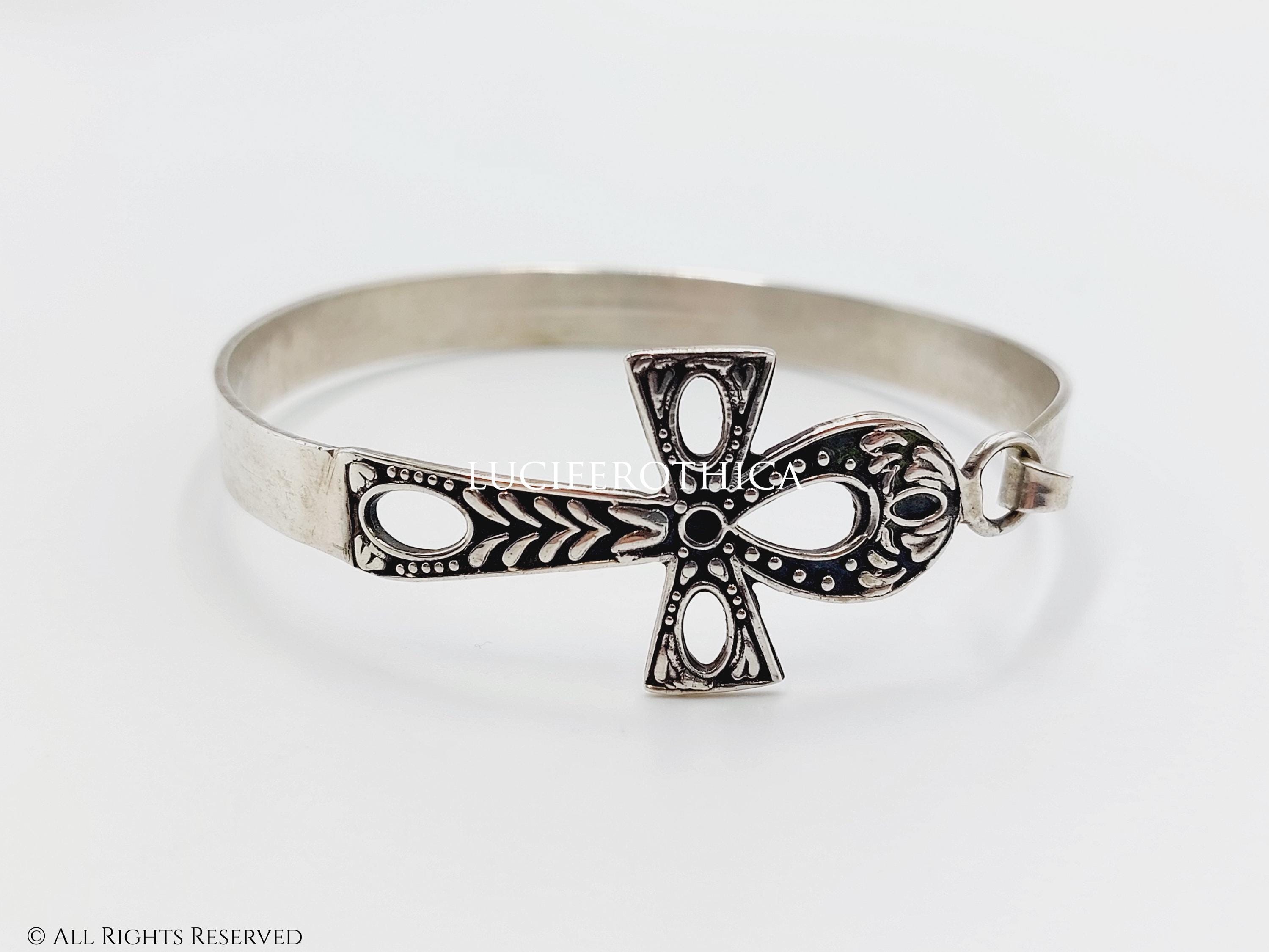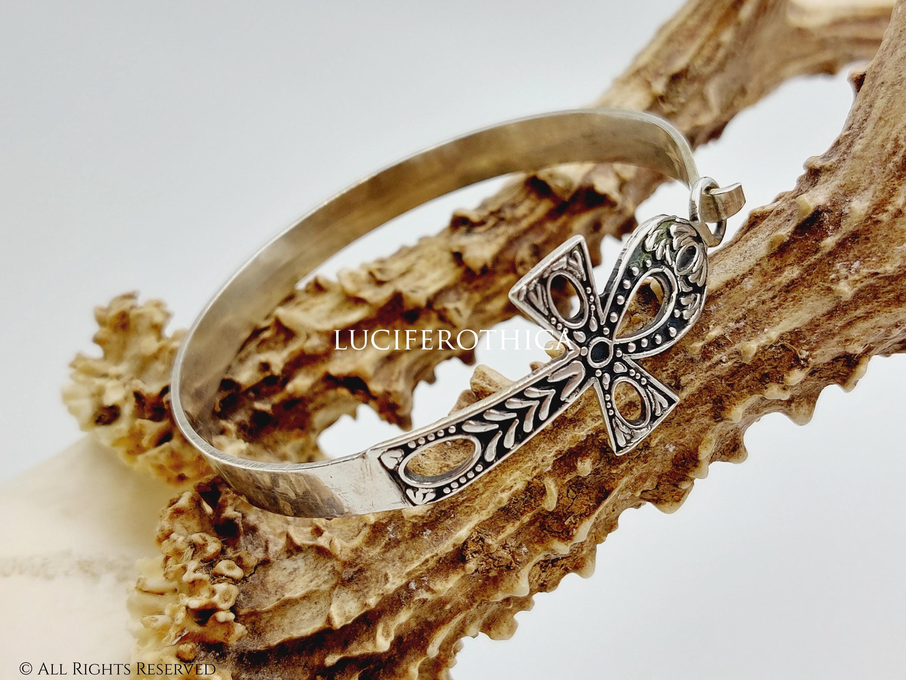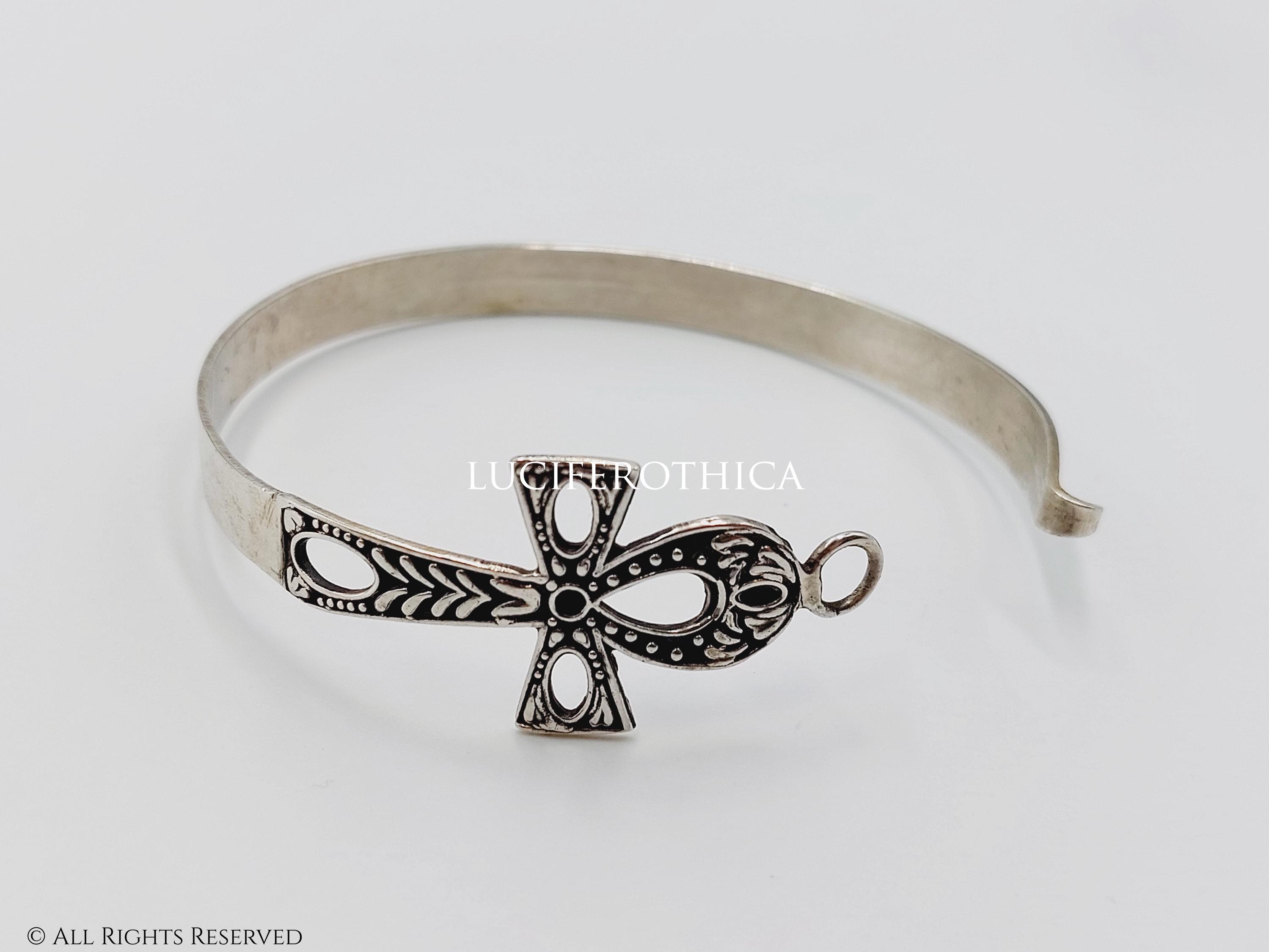 Beautiful Egyptian Crux Ansata bangle bracelet in Silver Metal.