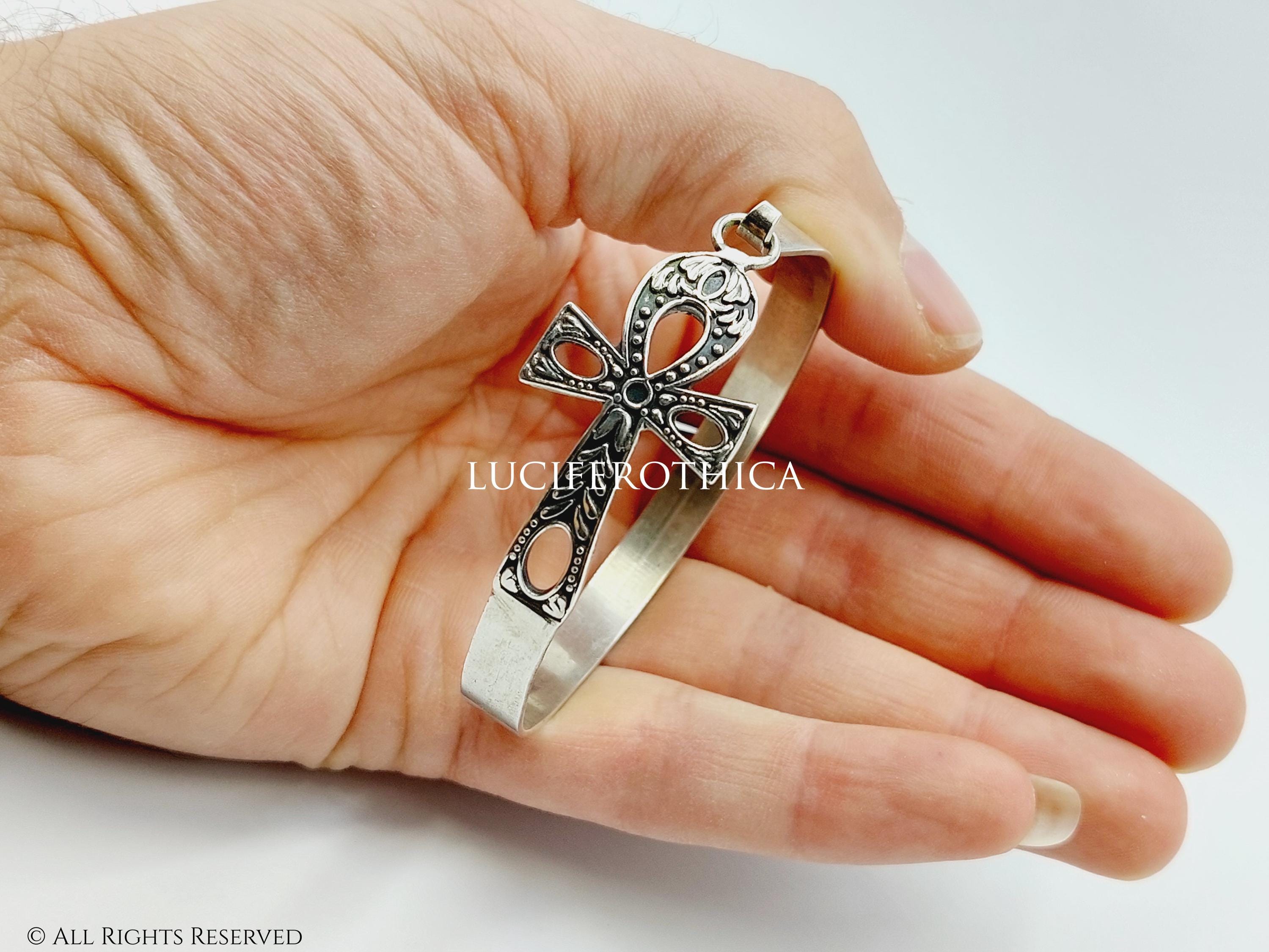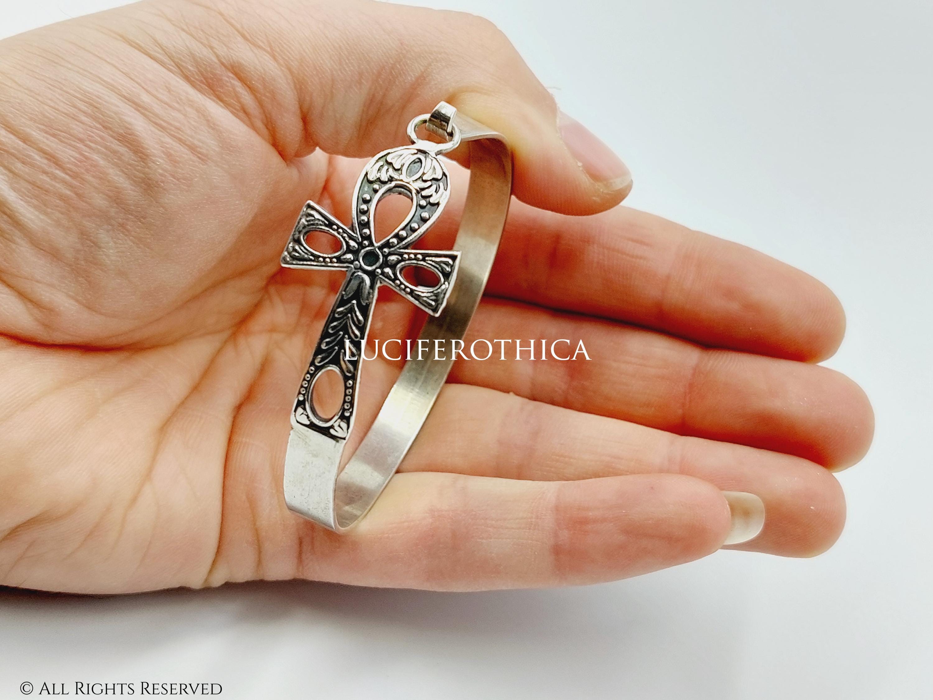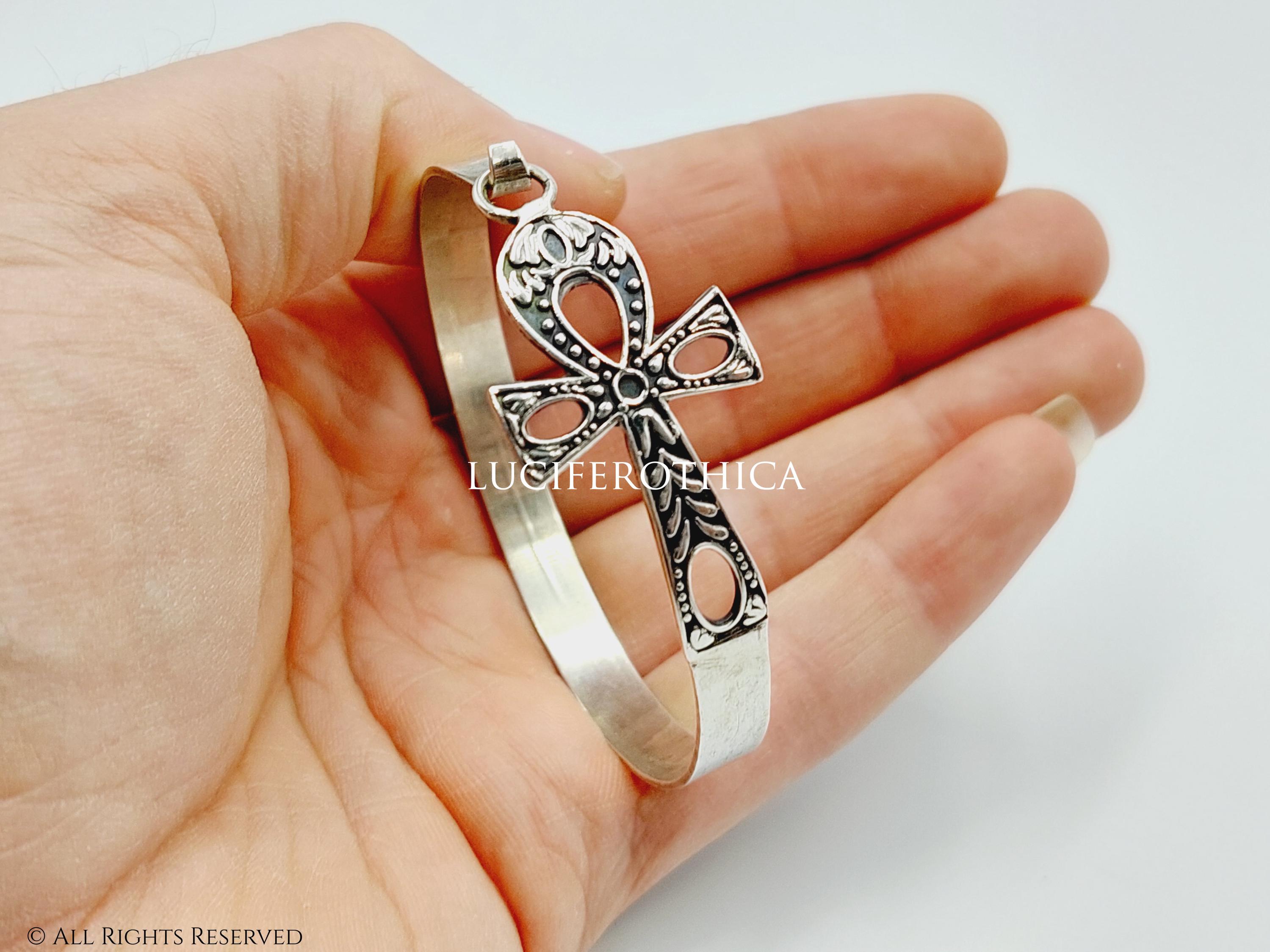 Beautiful Egyptian Crux Ansata bangle bracelet in Silver Metal.