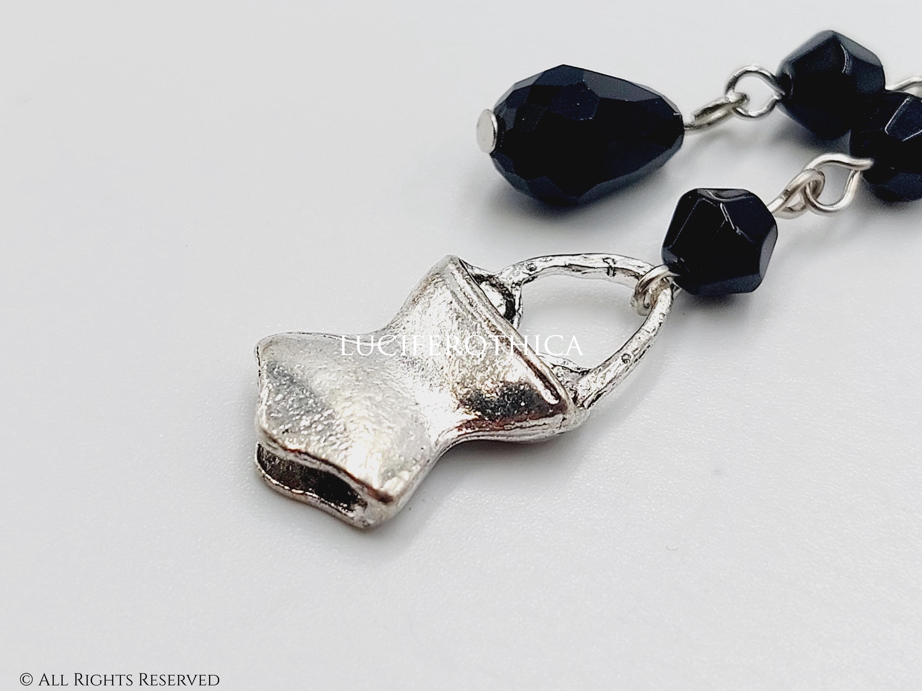 - 3D Overbust corset charm in silver tone.