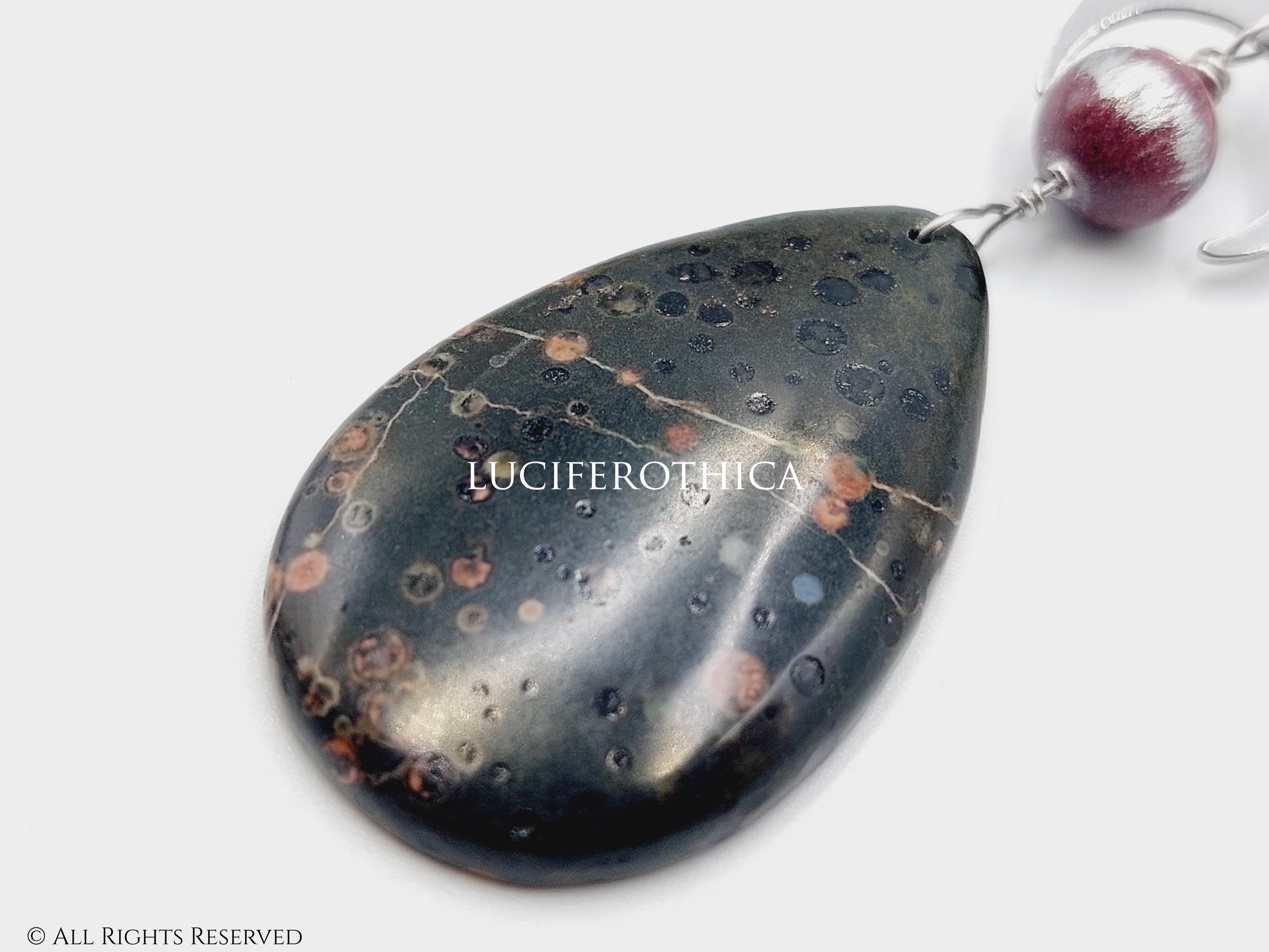 - Droplet shaped Polished Plum Blossom Jade / Jasper Crystal. (4.8cm in length)