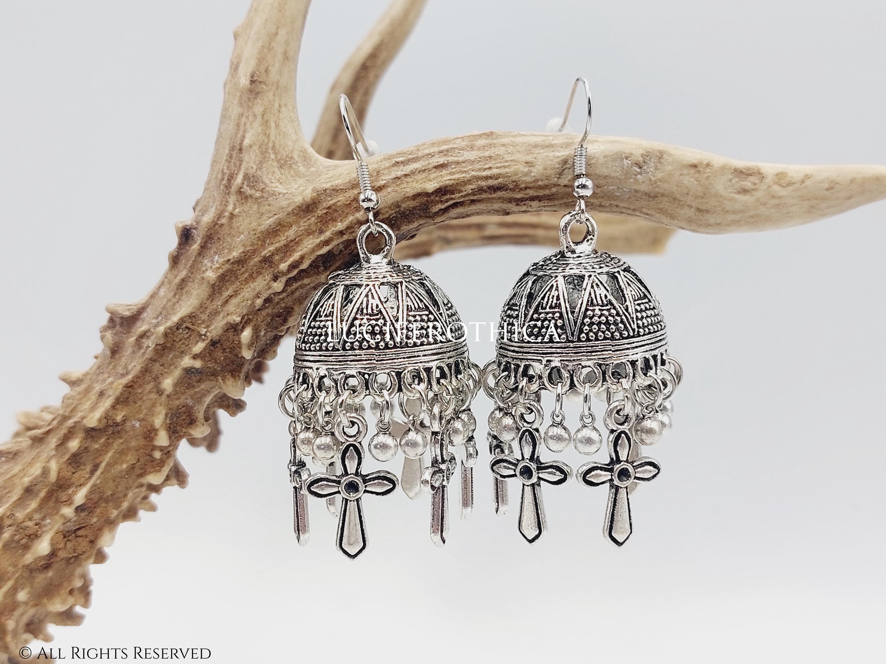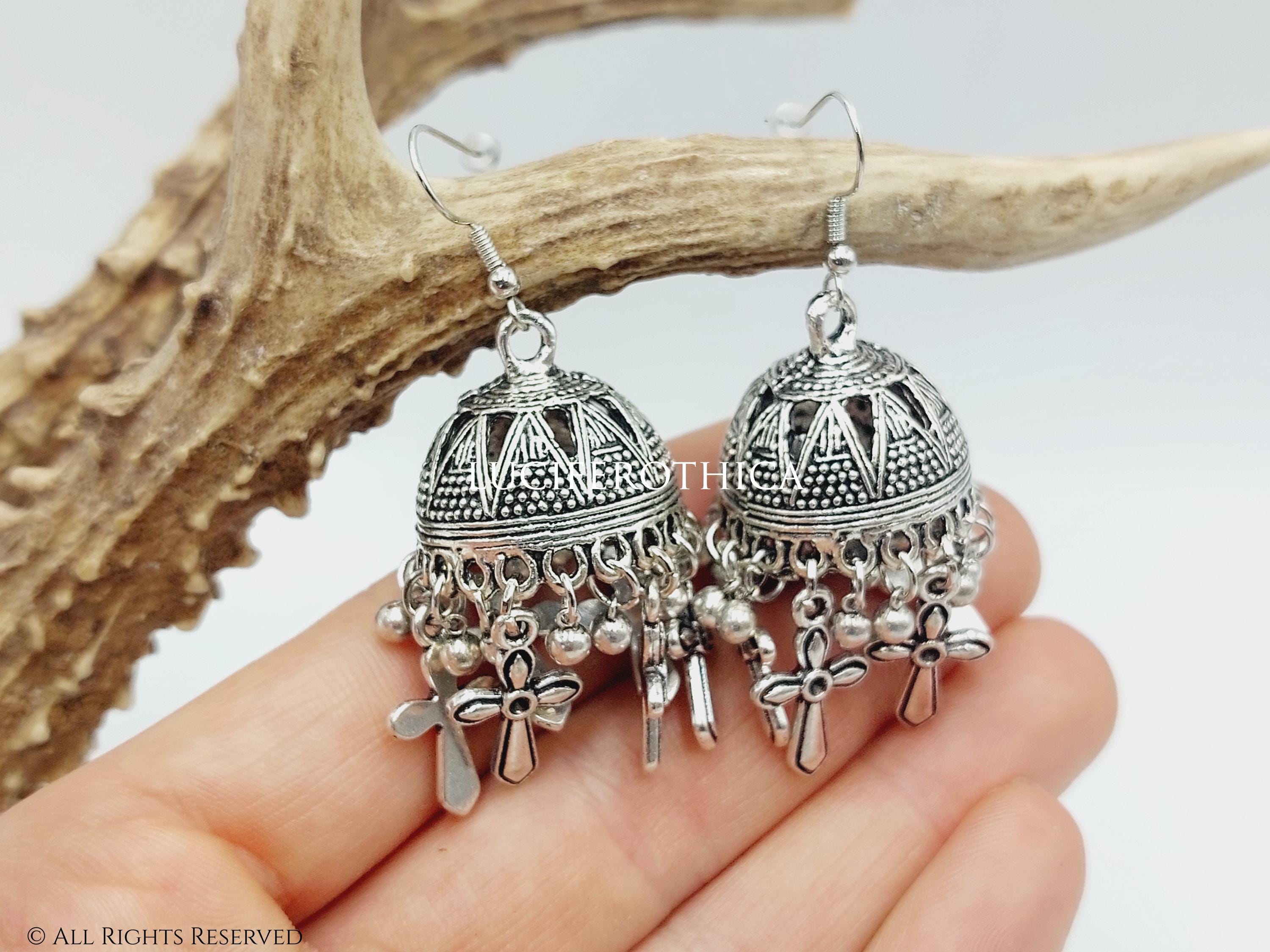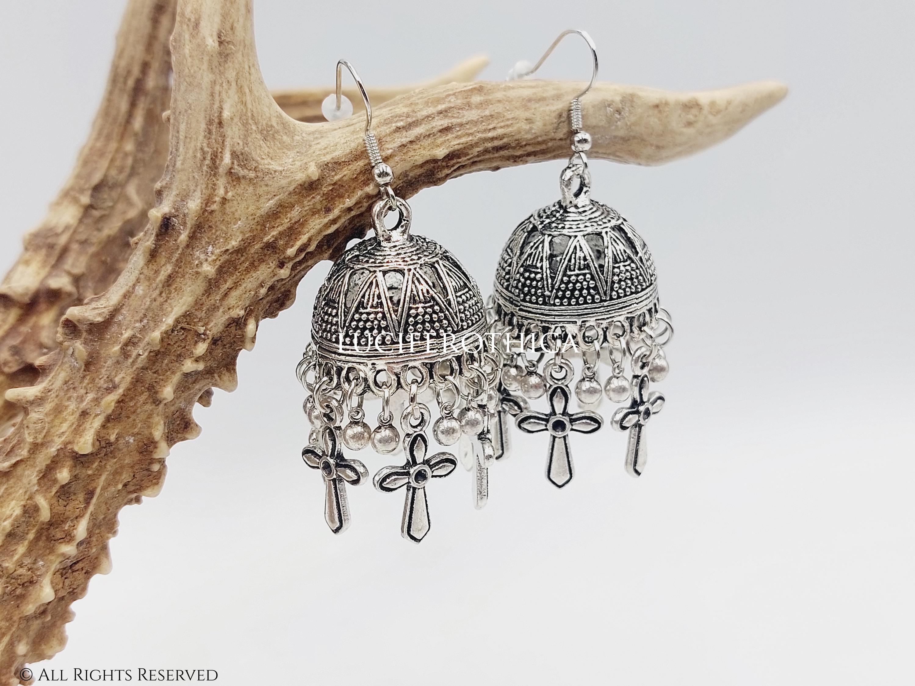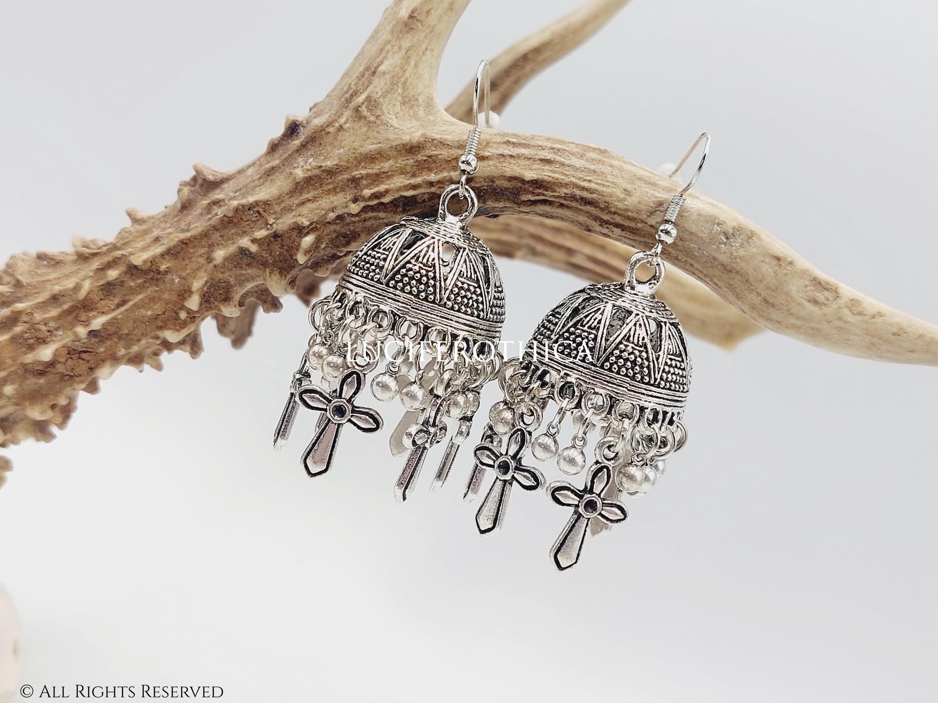 - 6 hanging victorian crosses on each earring with lots of mini dangling balls.