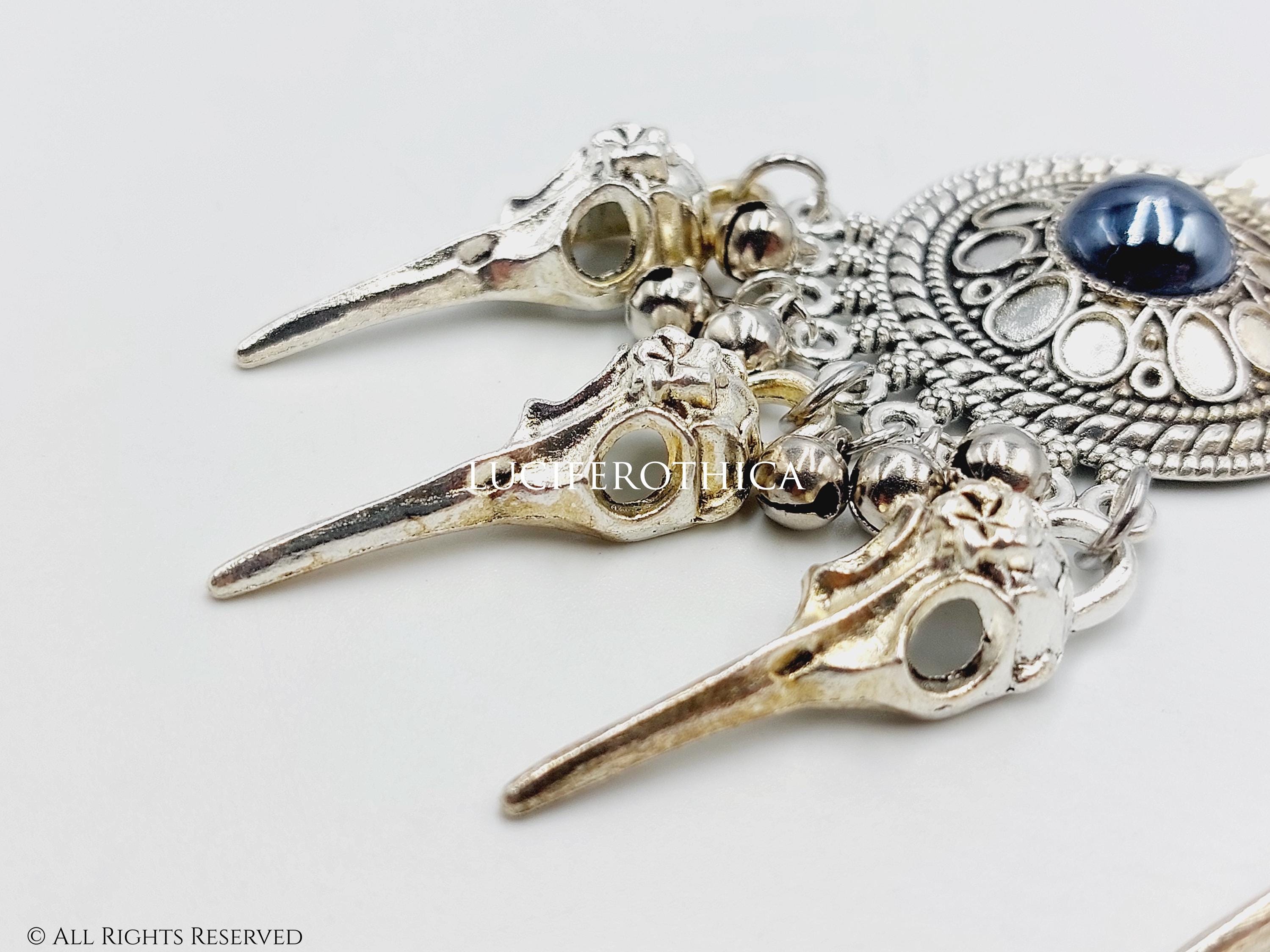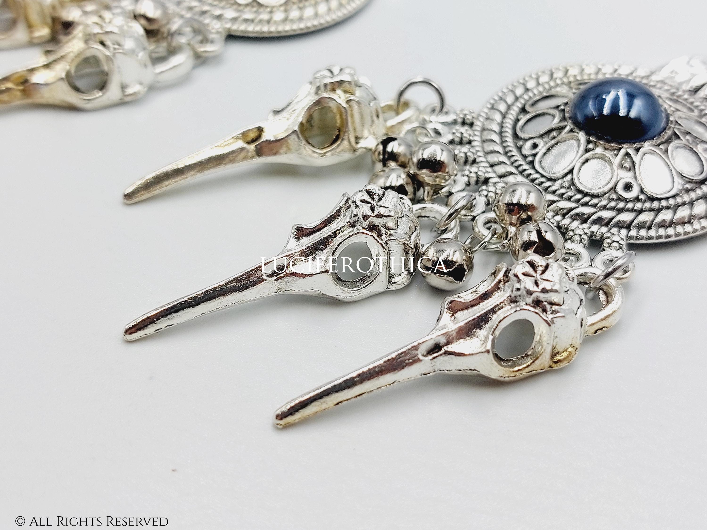 - 3 Tarnished Silver tone crow skulls. (Beautiful tarnished skull charms! Not completely silver tone.)