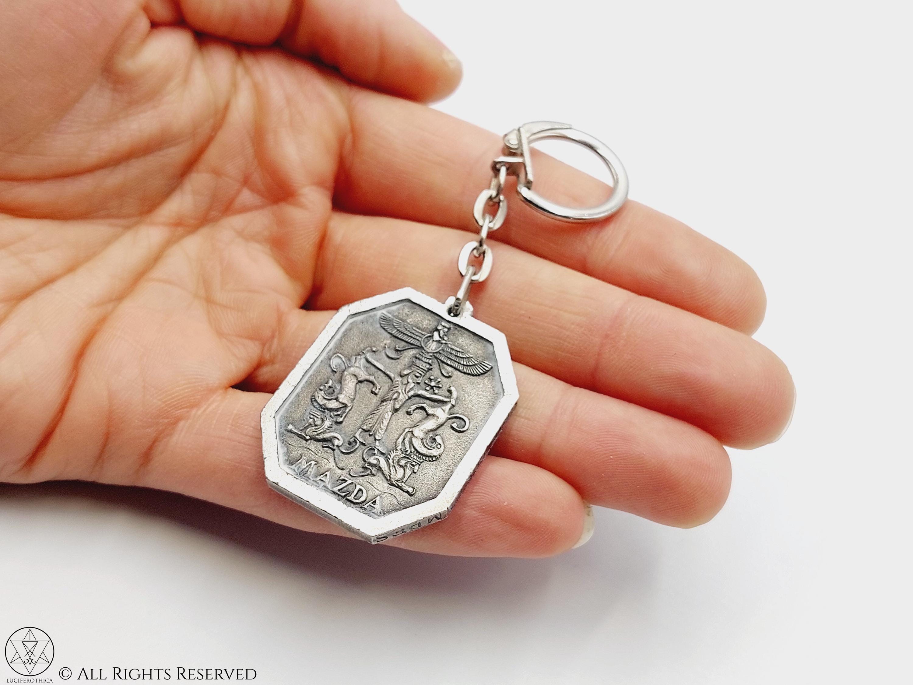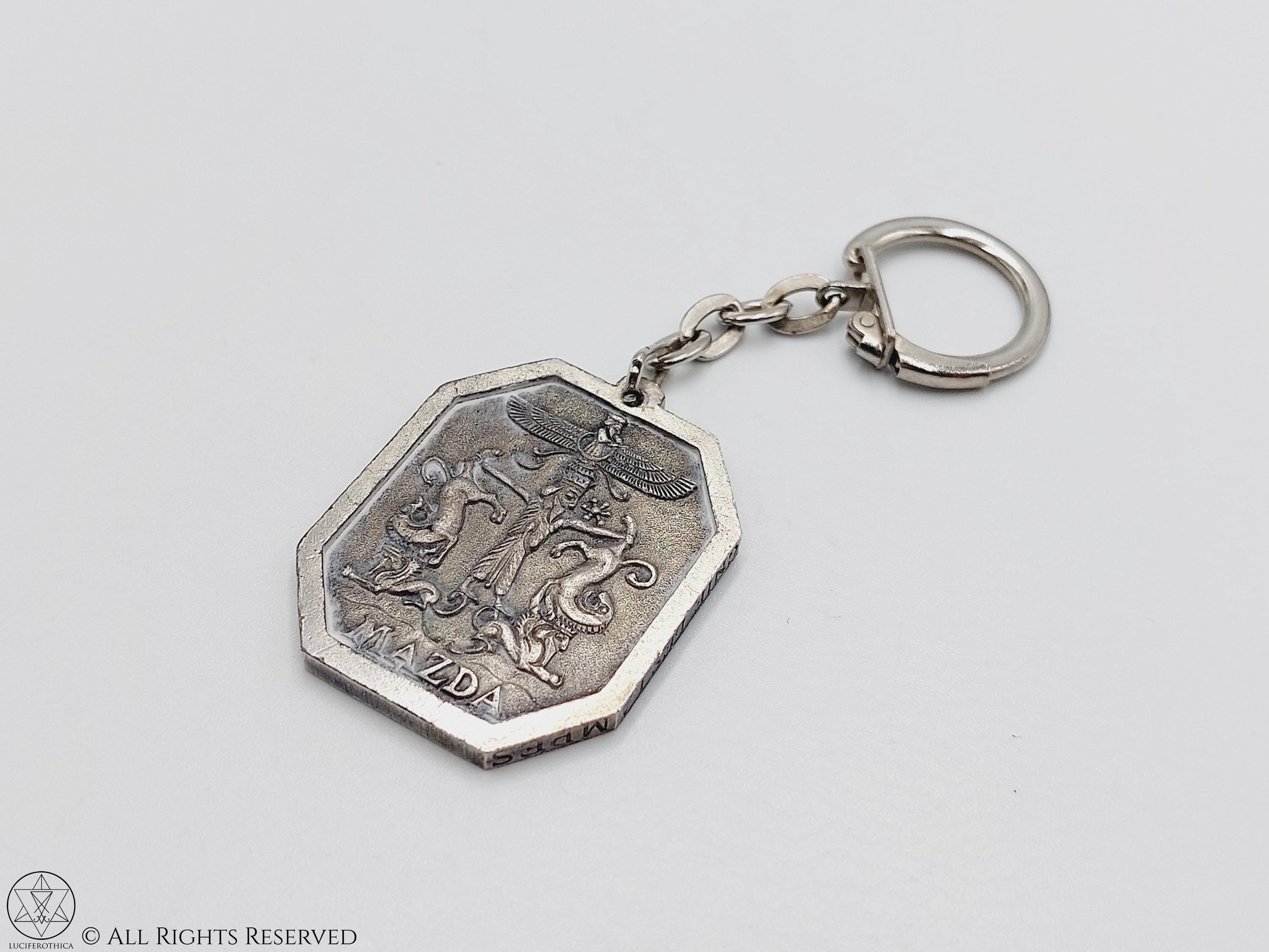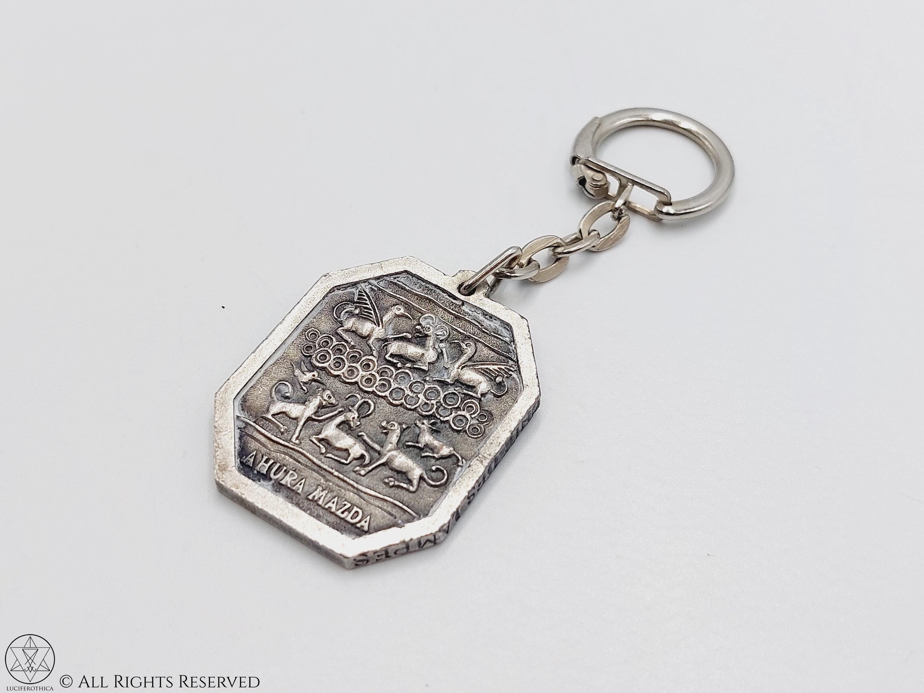 Very Unique old keychain depicting the main Zoroastrian deity Ahura Mazda and the faravahar symbol.