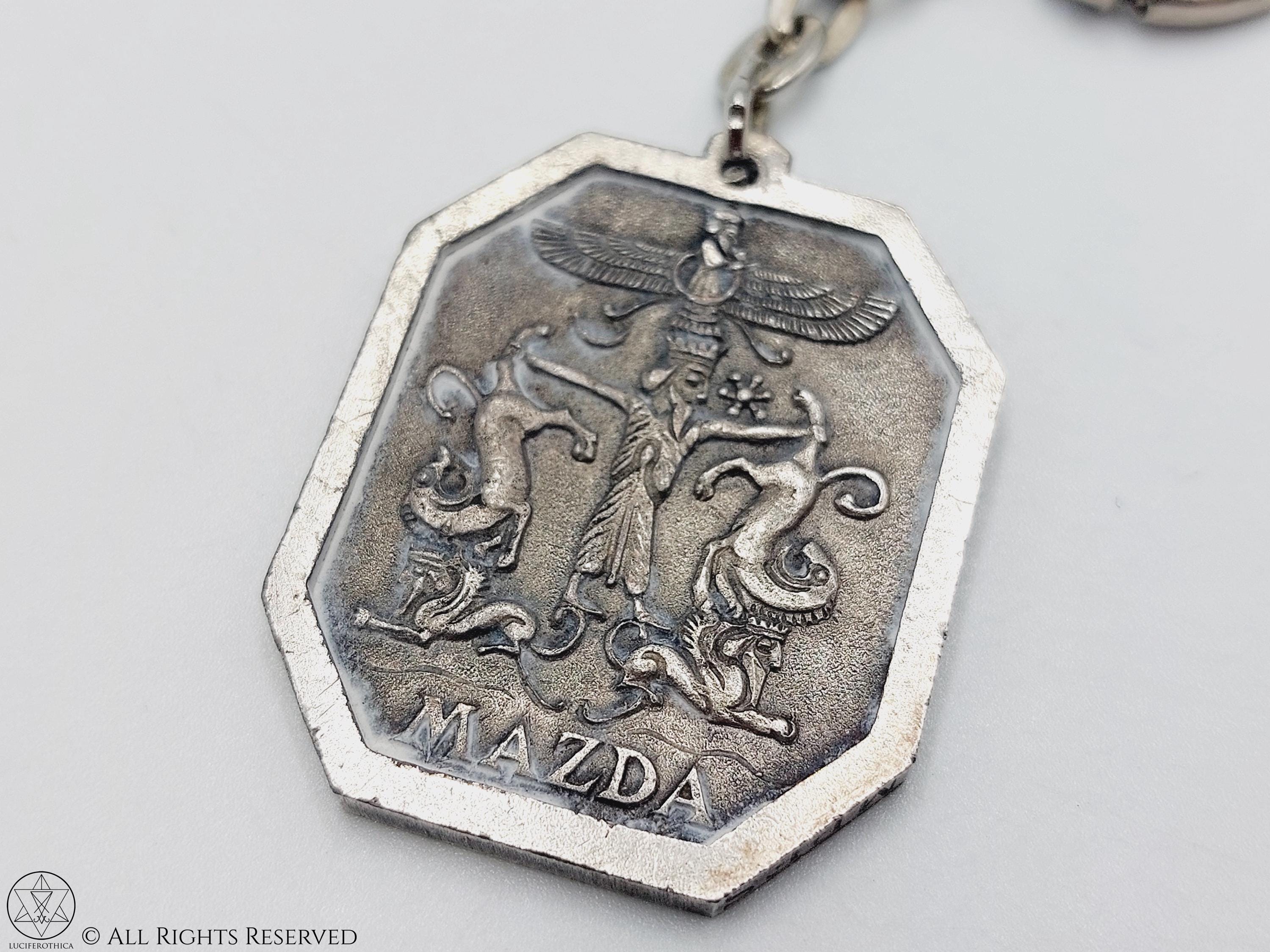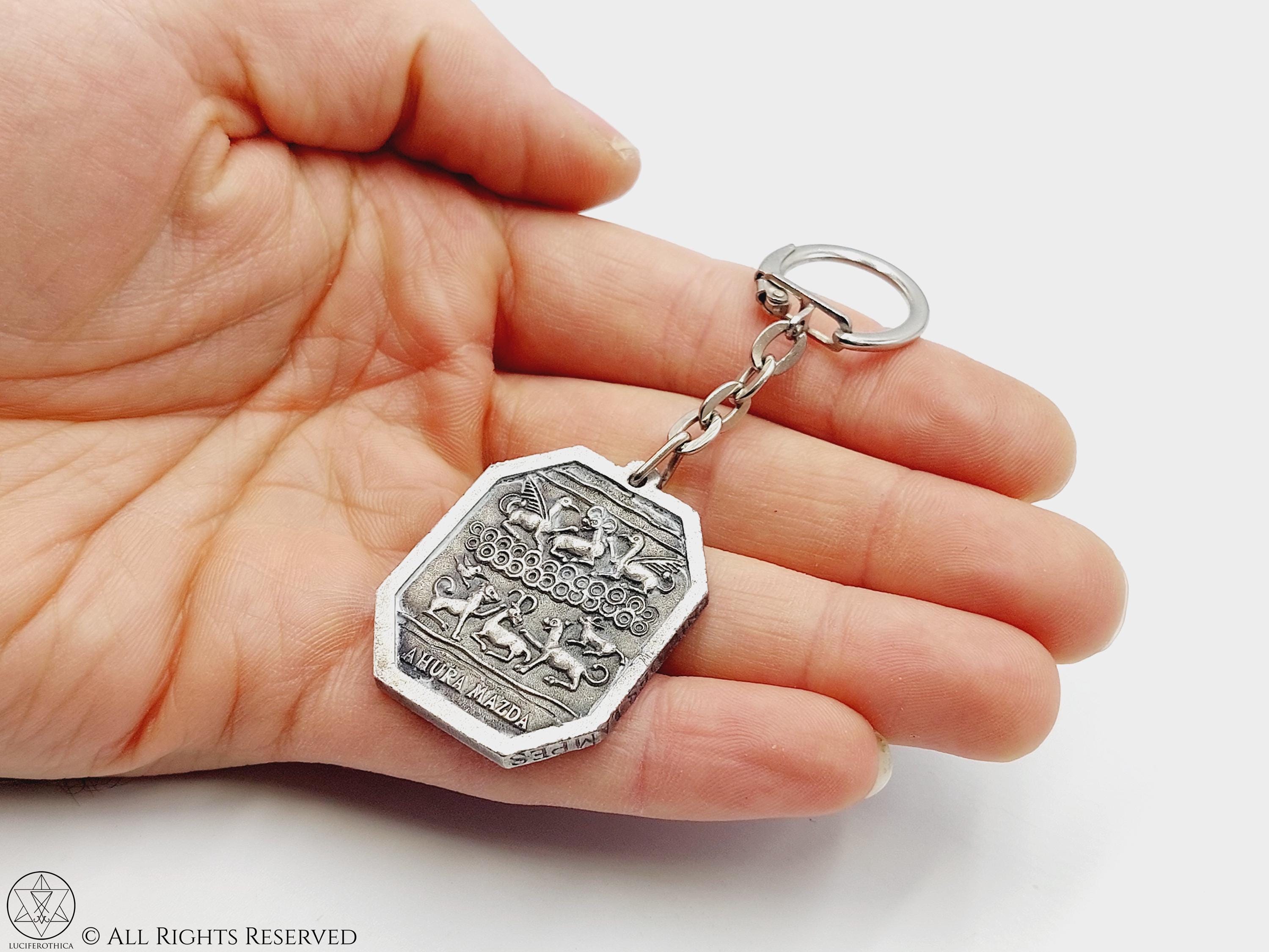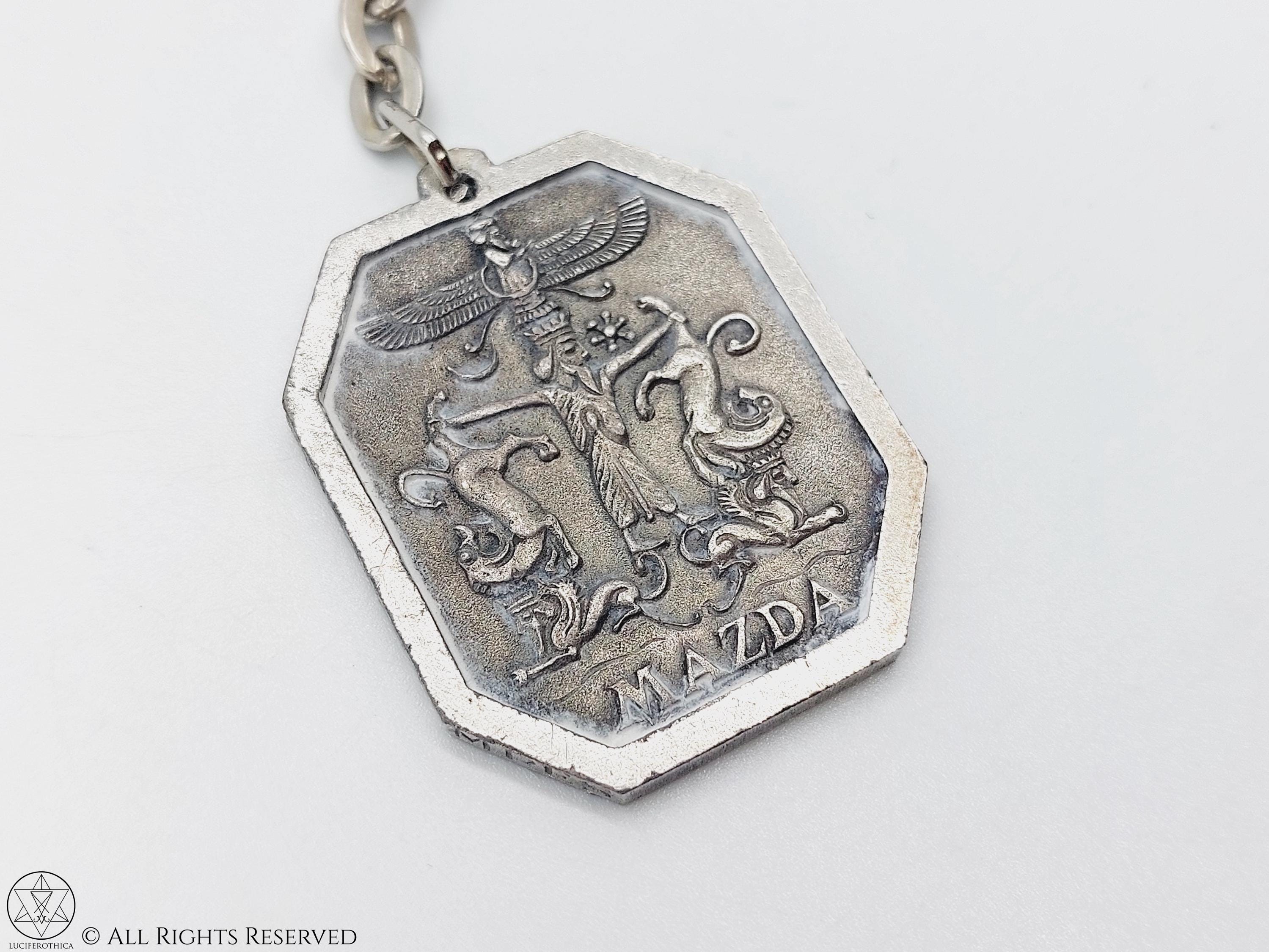 Very Unique old keychain depicting the main Zoroastrian deity Ahura Mazda and the faravahar symbol.