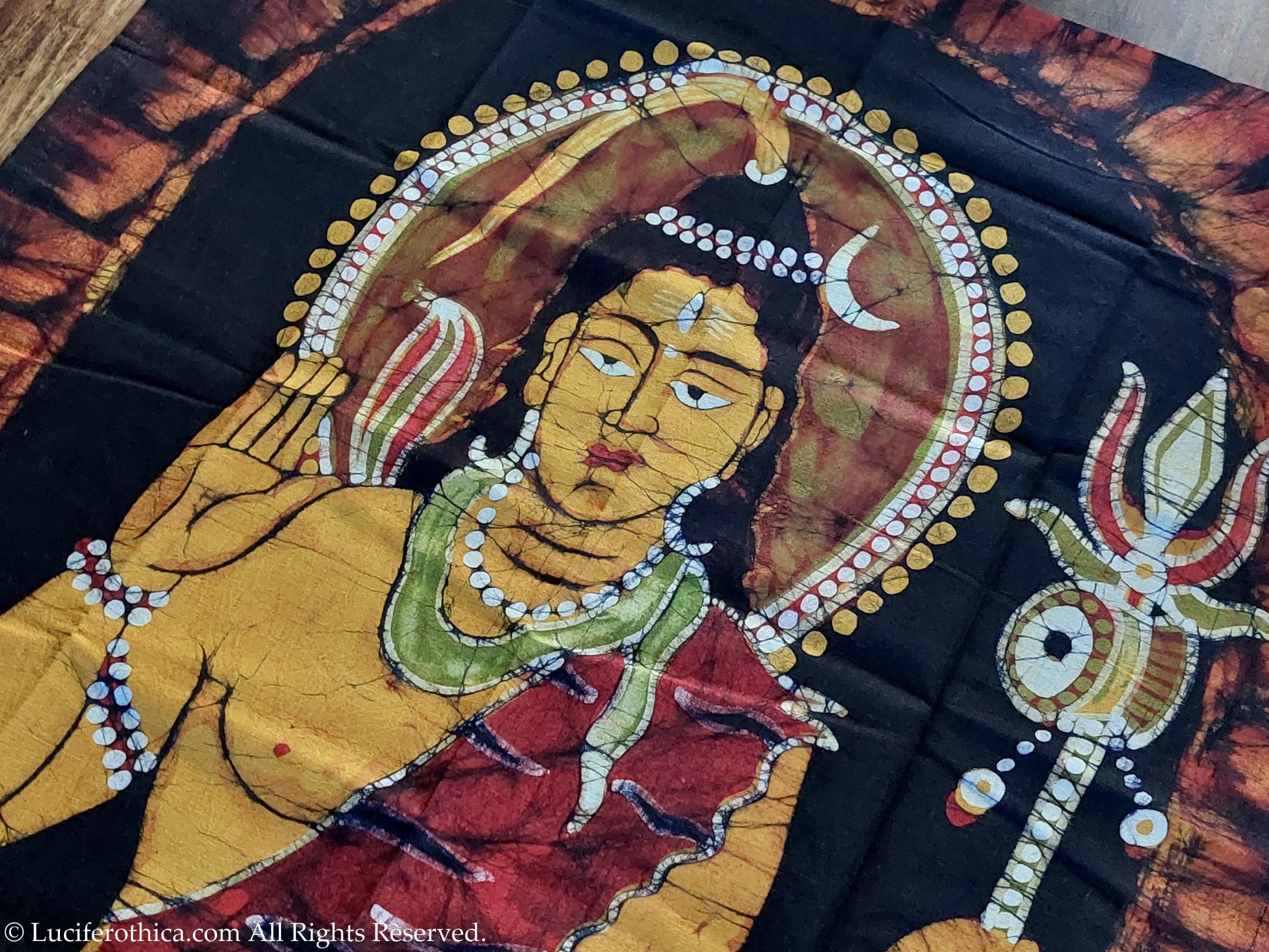 - Marvelous depiction of Lord Shive in natural color pigments on a dark background.