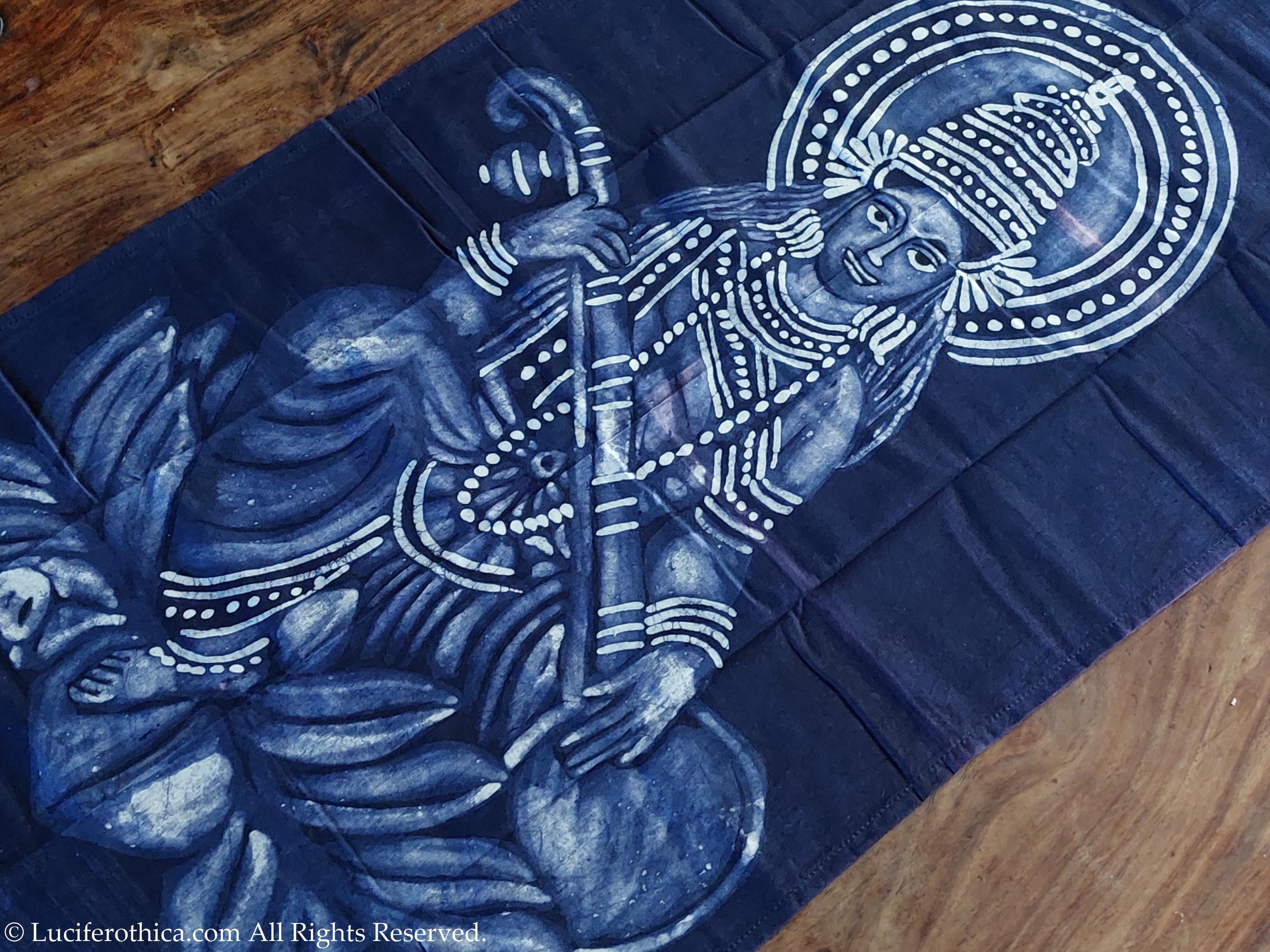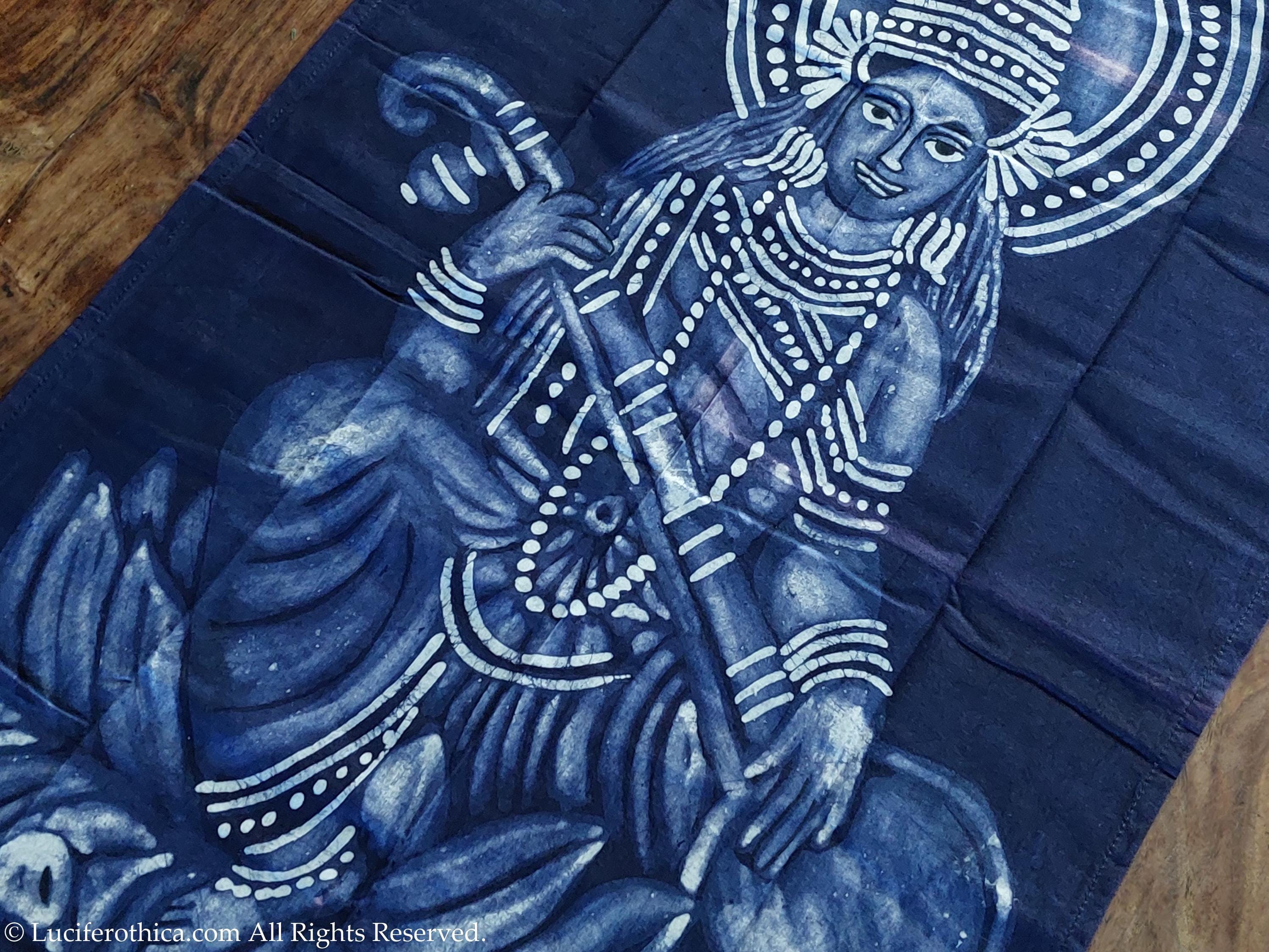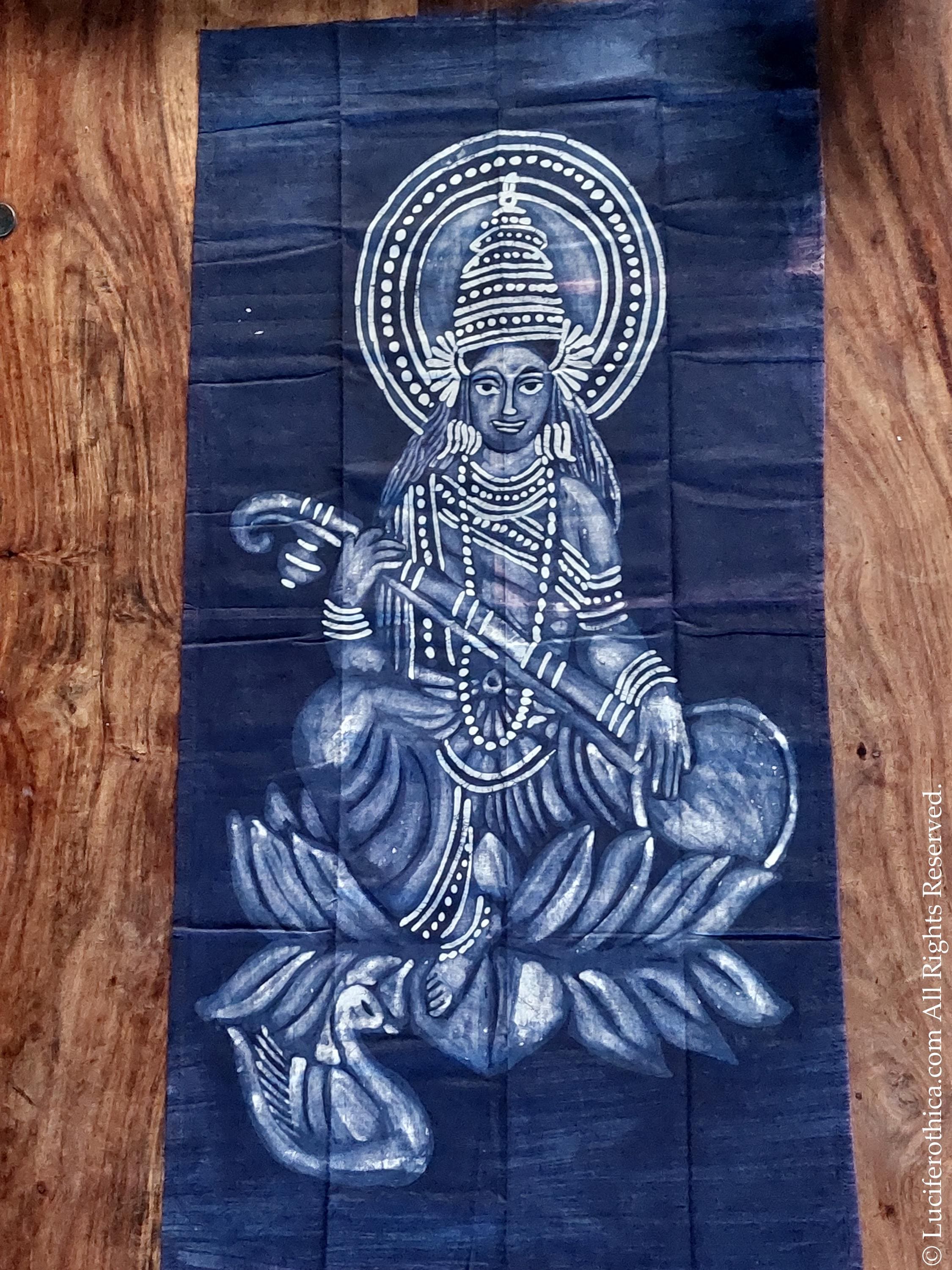 Unique one of a kind handmade flag poster in honor of the Hindu Goddess of Music & Art Saraswati.