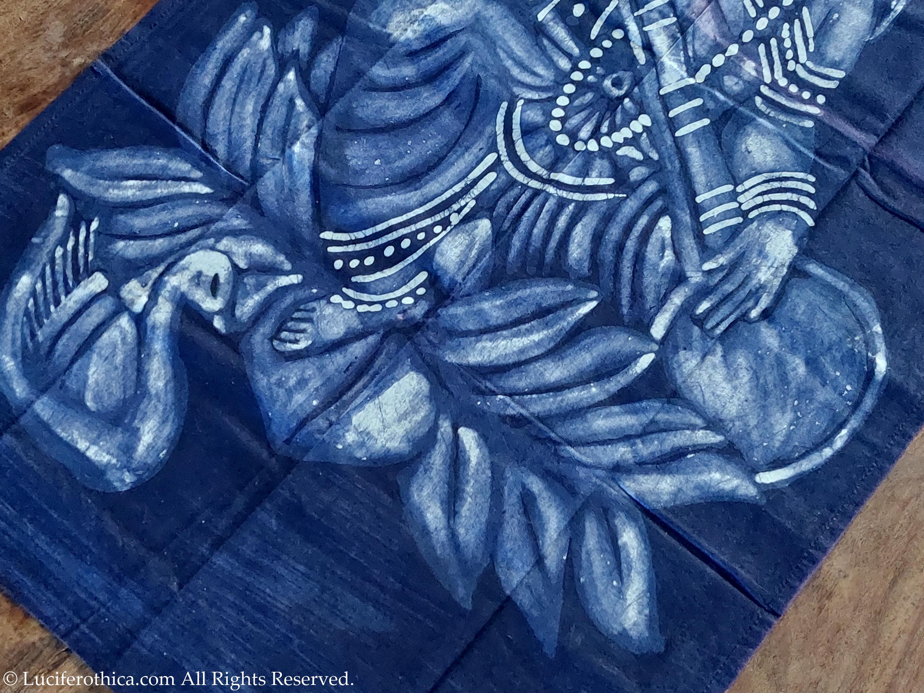 - Marvelous depiction of Saraswati in natural color pigments.