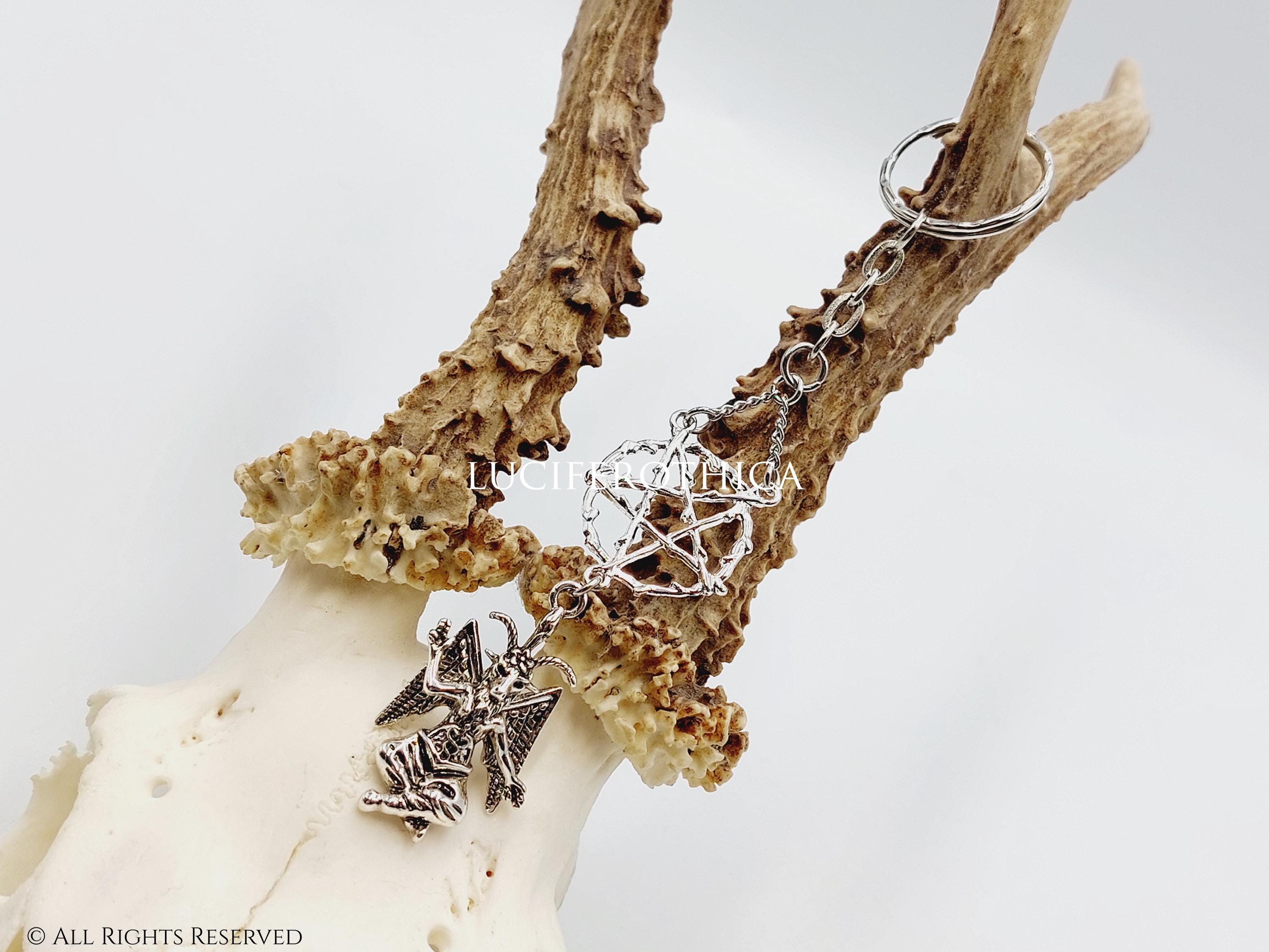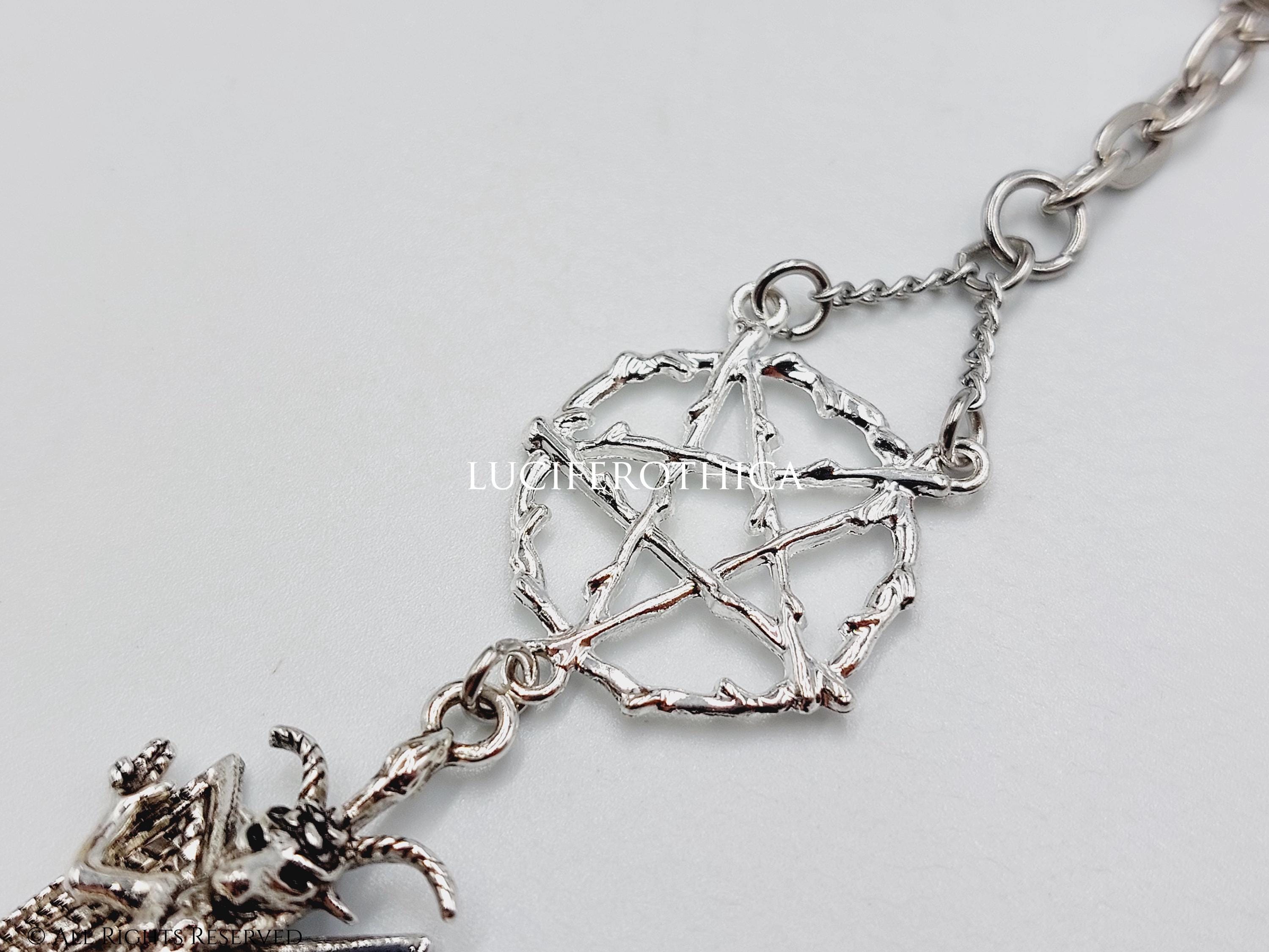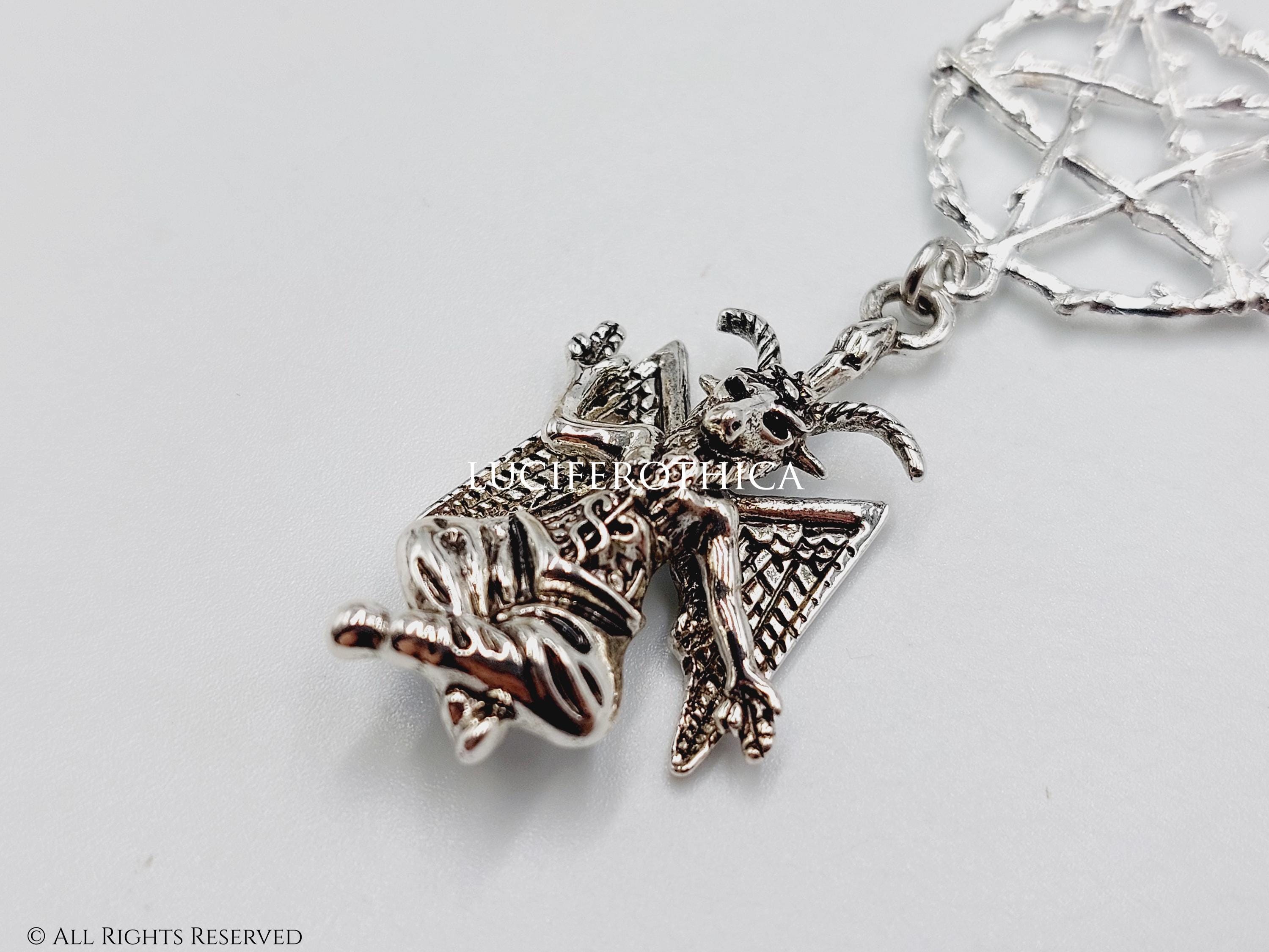 - Baphomet charm at the end (3.5cmx2cm). Silver colour.