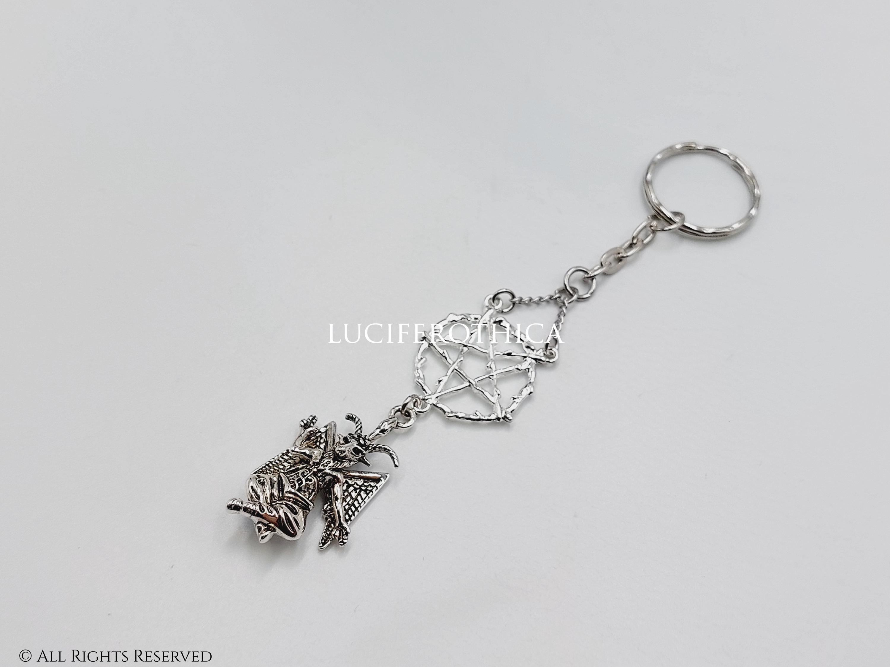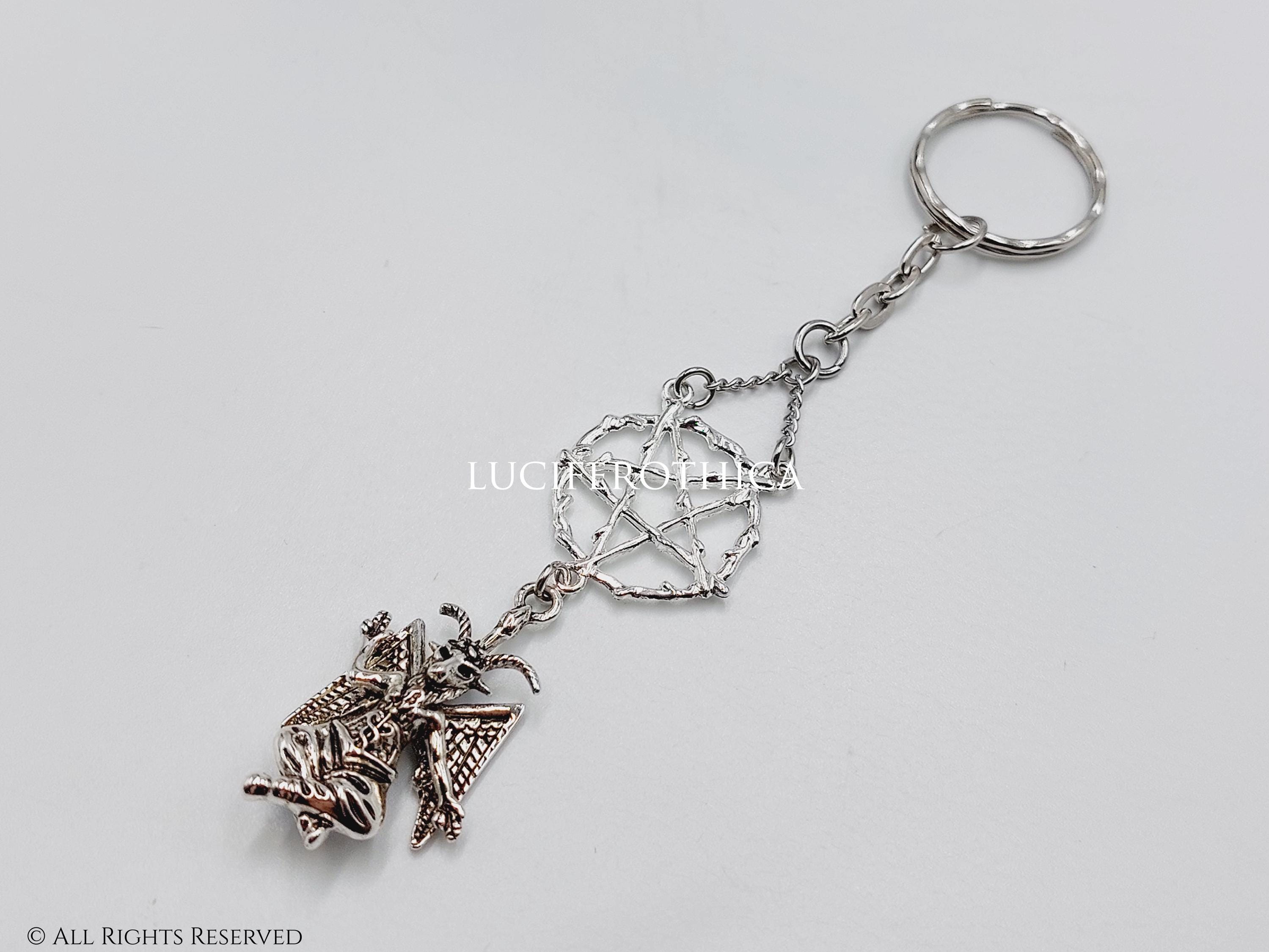 Long Baphomet Pentagram Keychain