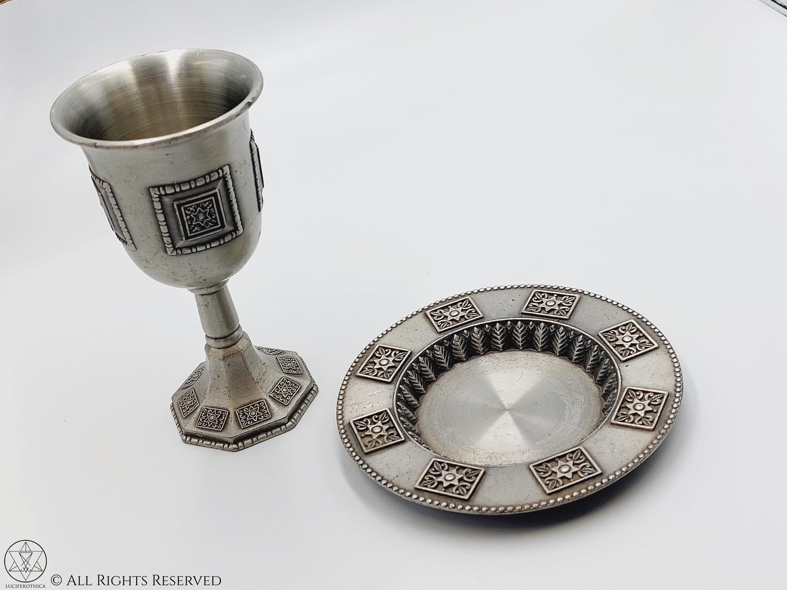 Beautiful vintage Sabbathical altar wine cup and plate.