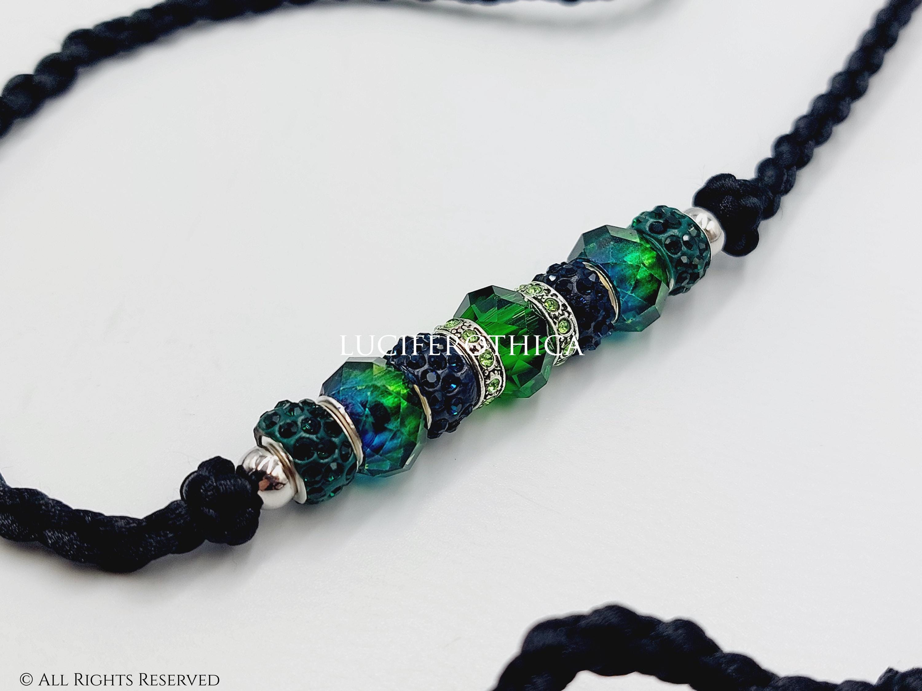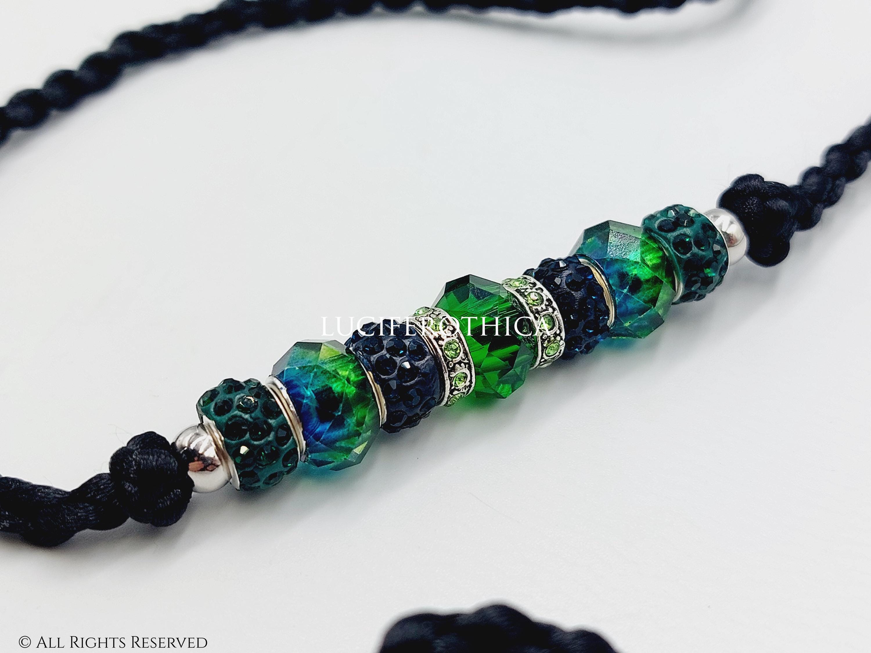 - Decorated with unique dark and light green blueish shimmering beads.