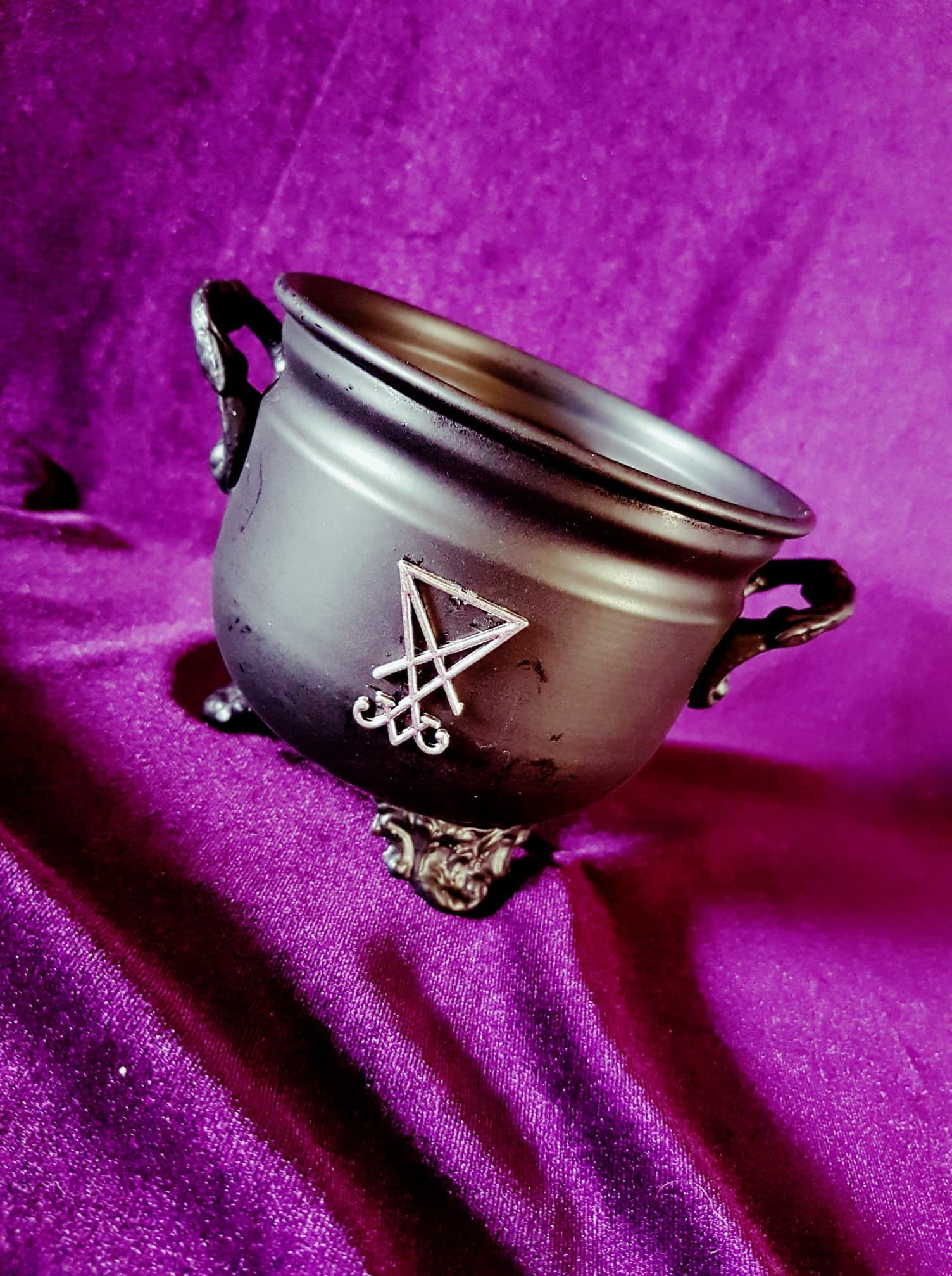 Cauldron with inverted pentagram and Sigil Of Lucifer