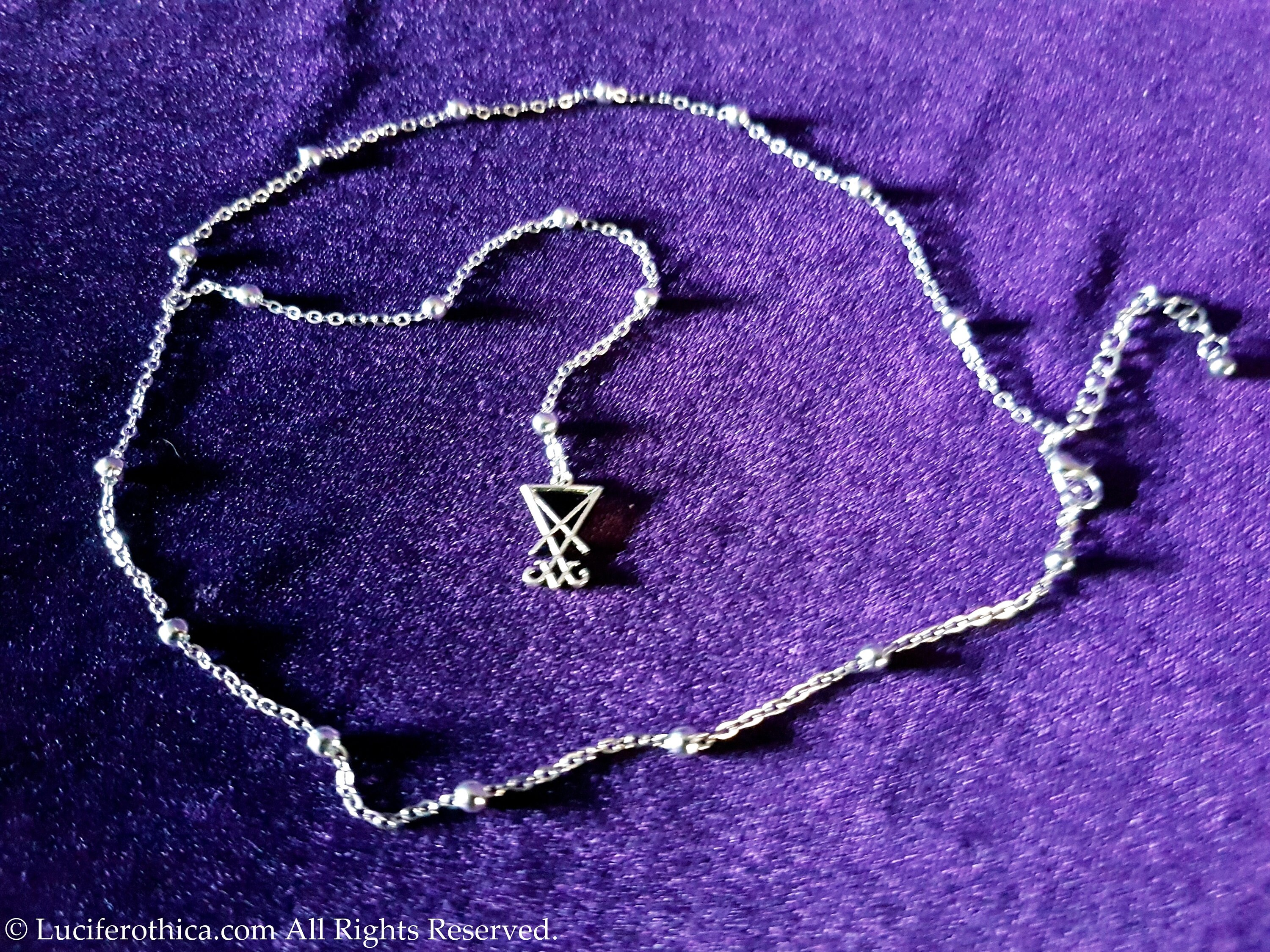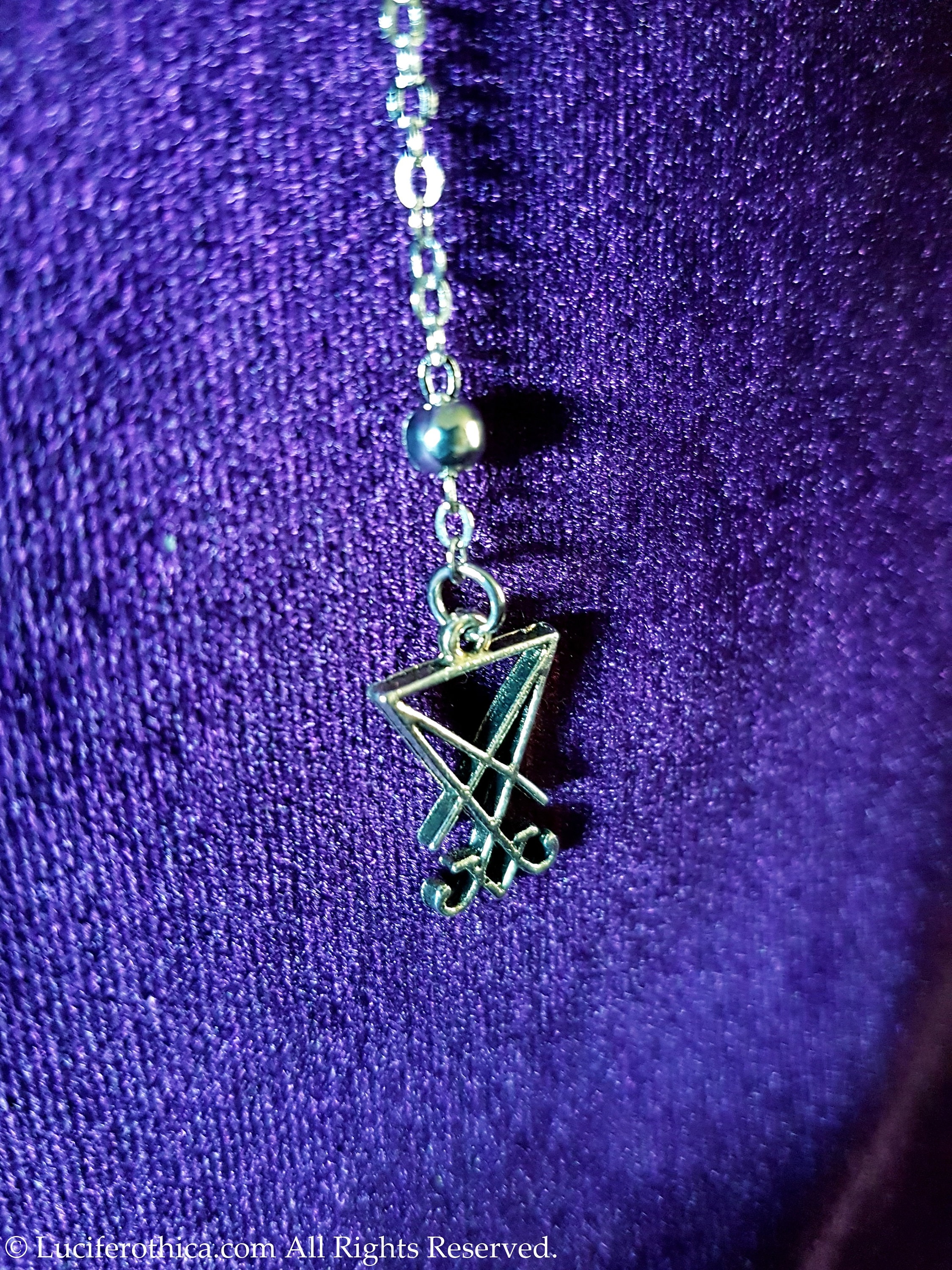 - 15cm long hanging chain with a Sigil of Lucifer at the end. Sigil is 1.5 cm big.