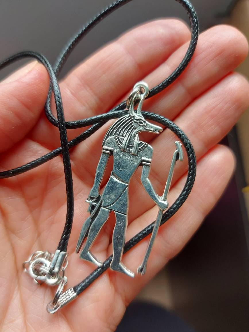 Anubis charm with 45cm long black wax cord + 5cm extension chain to adjust to your size.