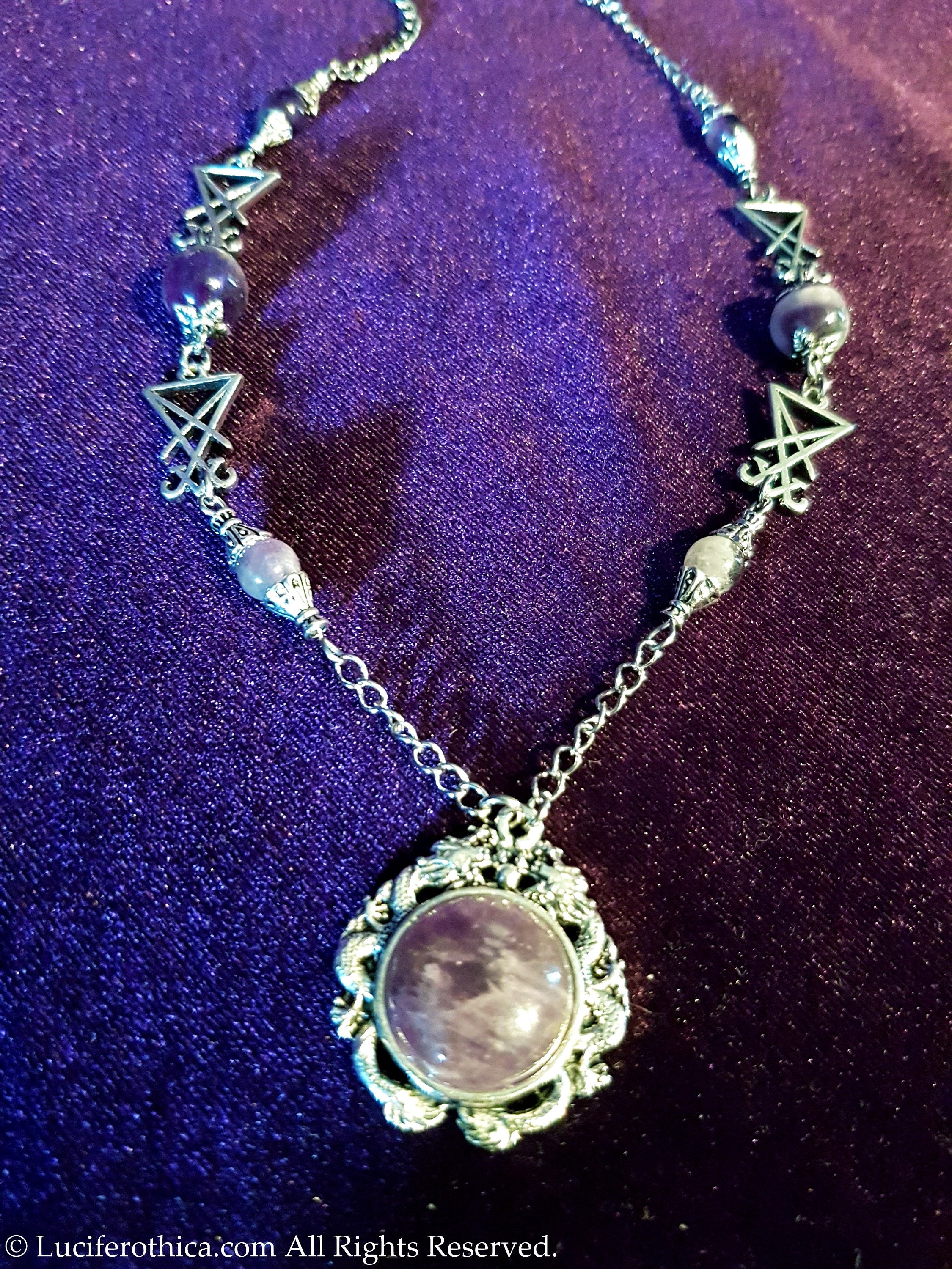 Handcrafted necklace containing 4 Mini Sigils of Lucifer.