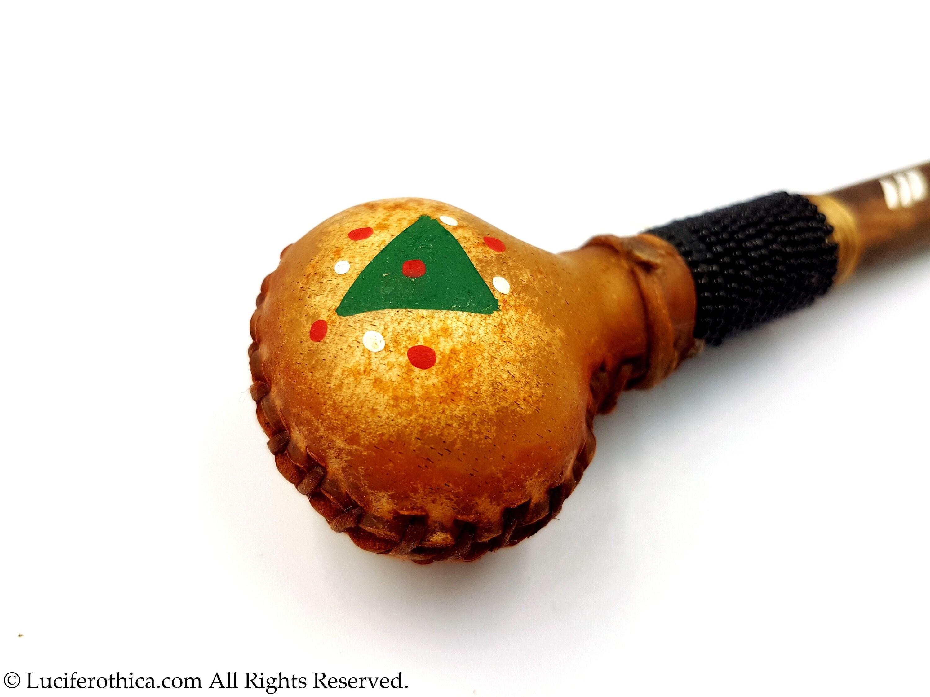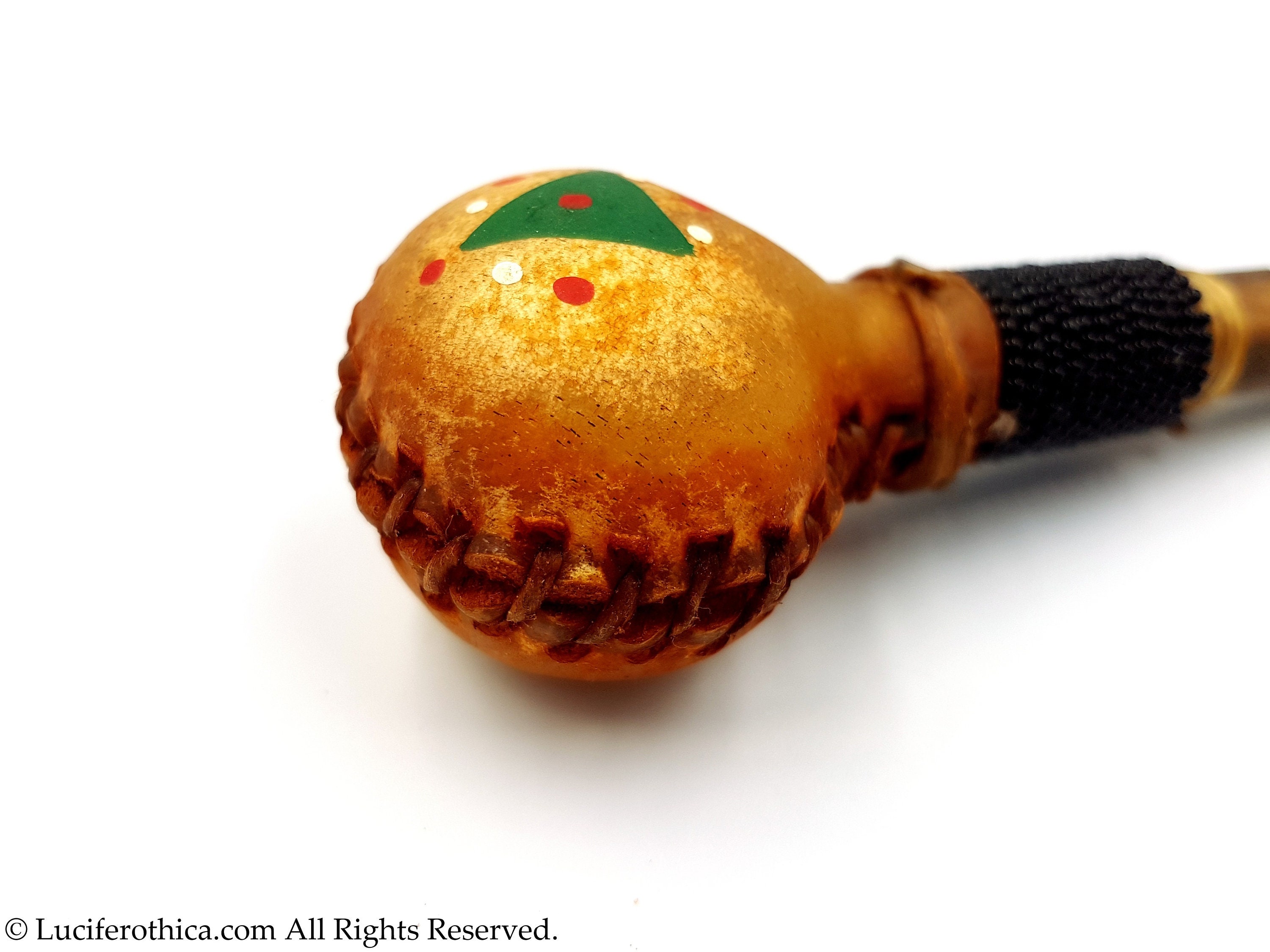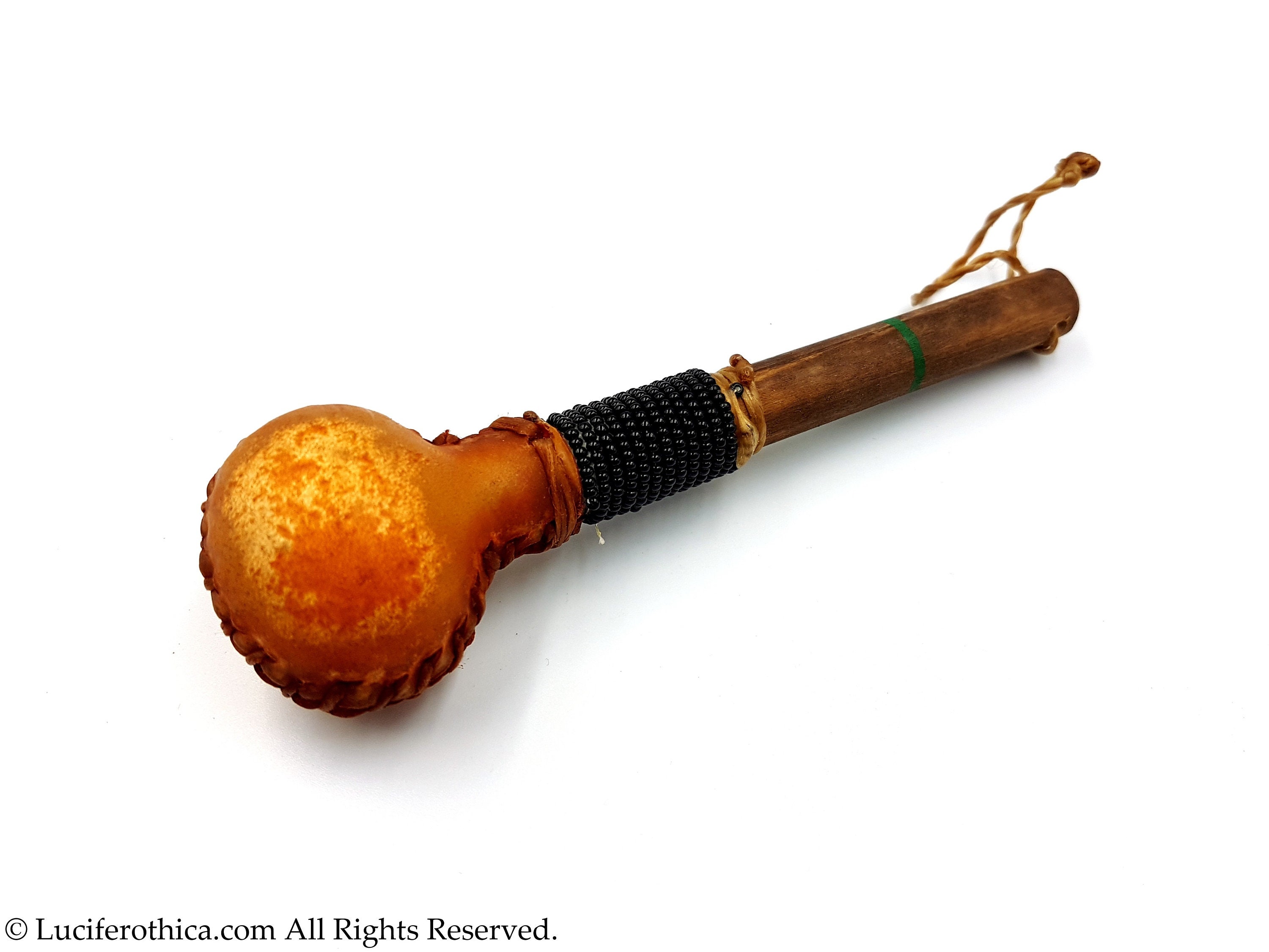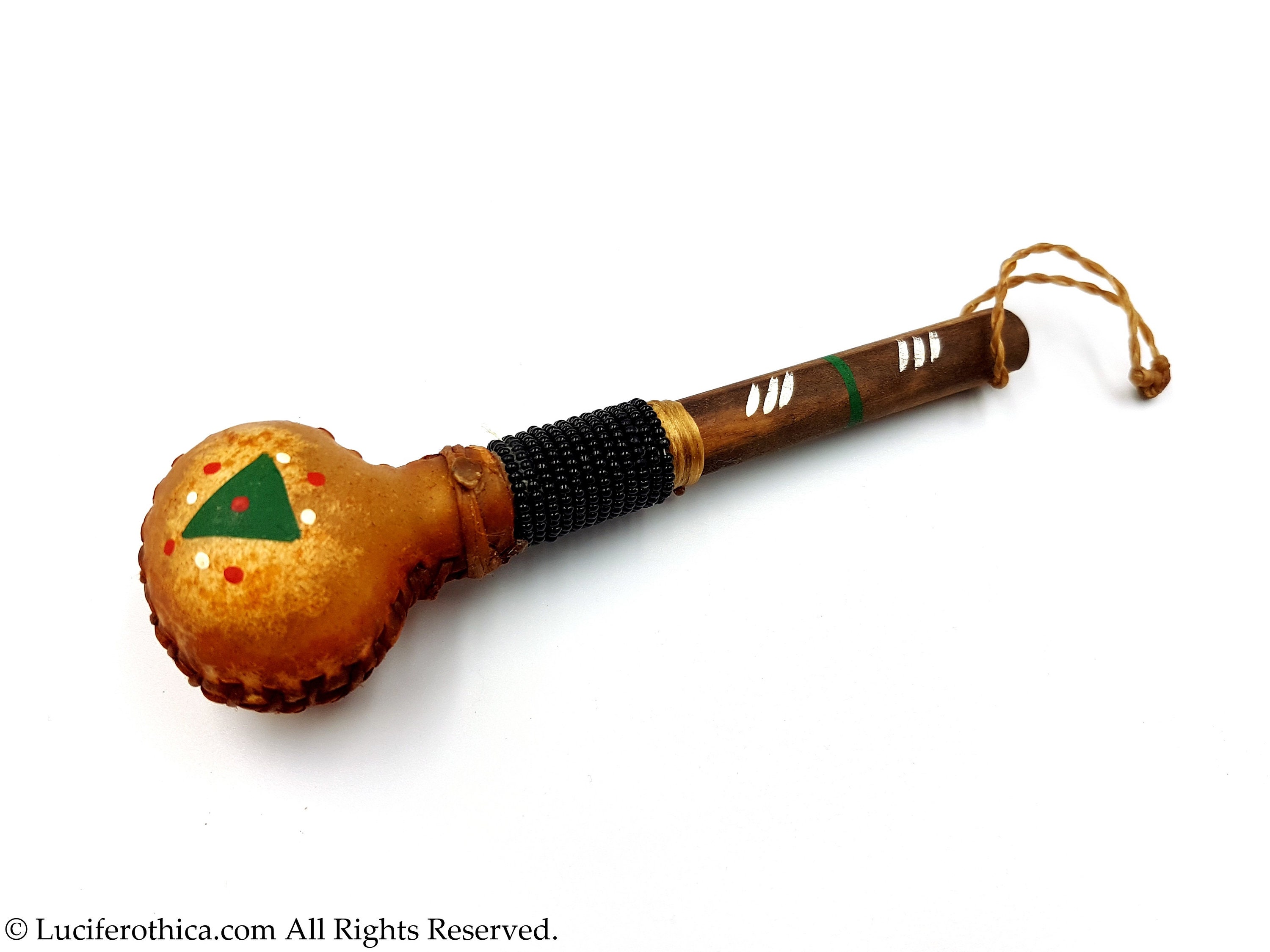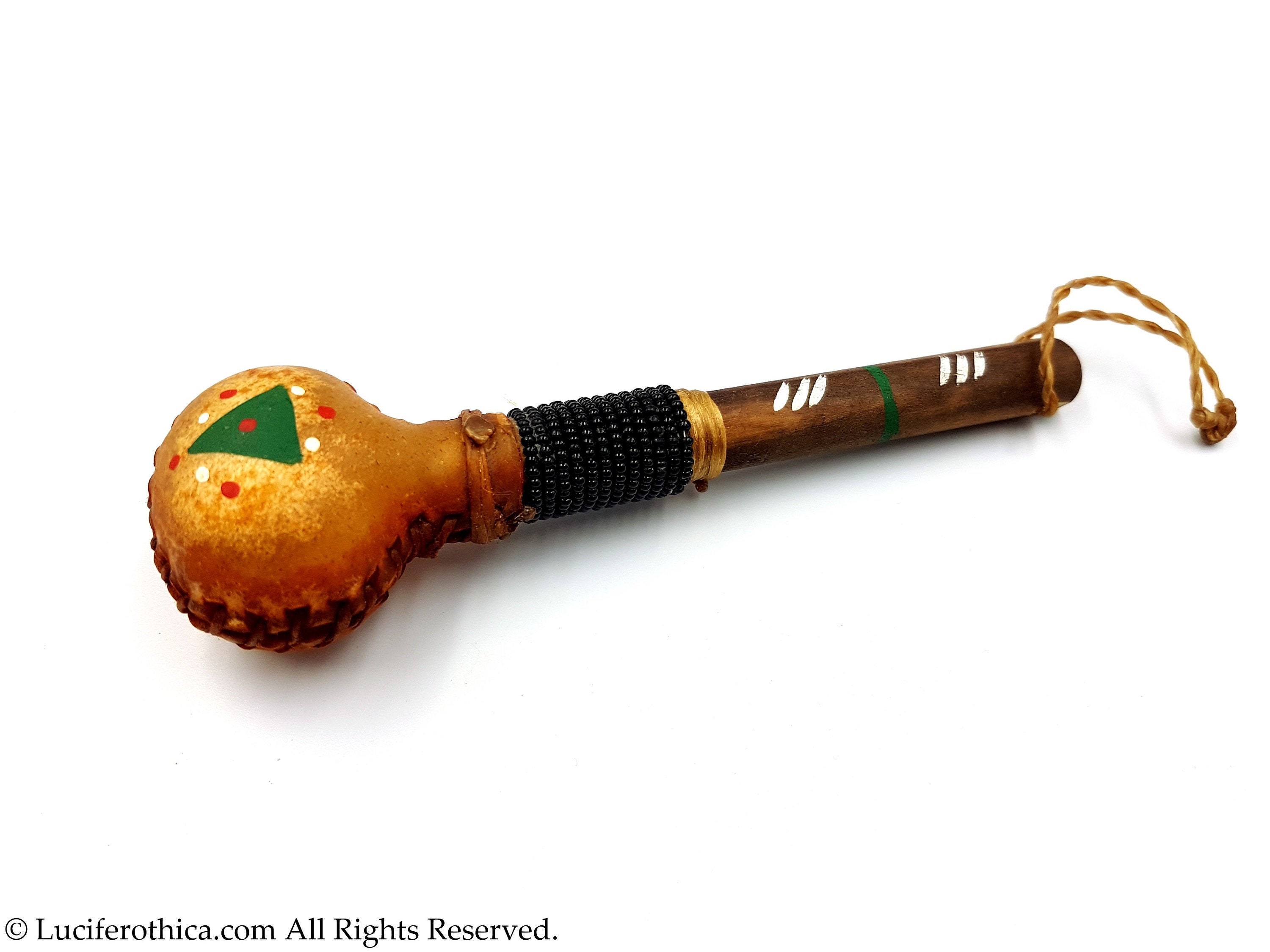 The rattle is filled with food - rice, beans and/or corn as an offering to the ancestors in exchange for their guidance, wisdom and assistance.